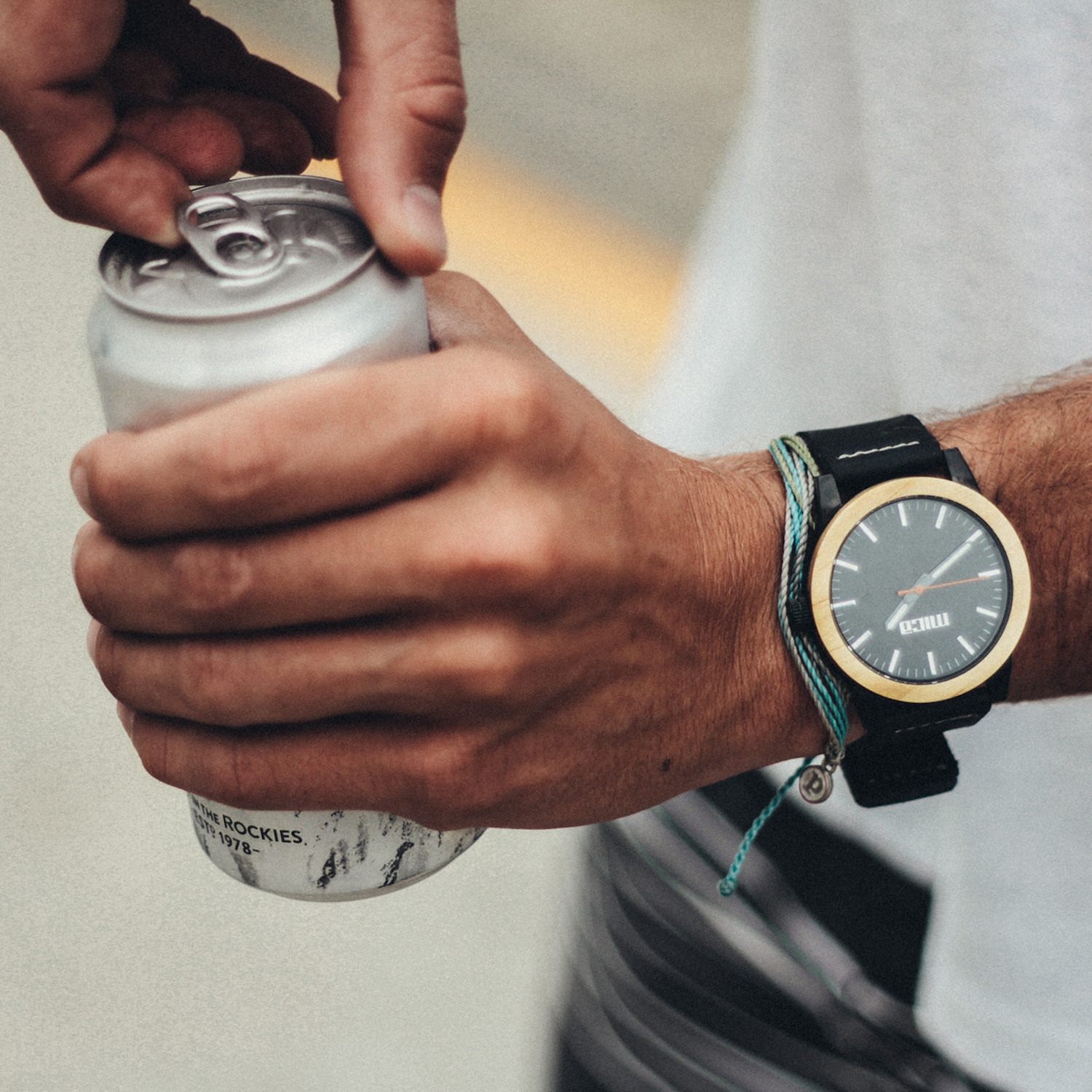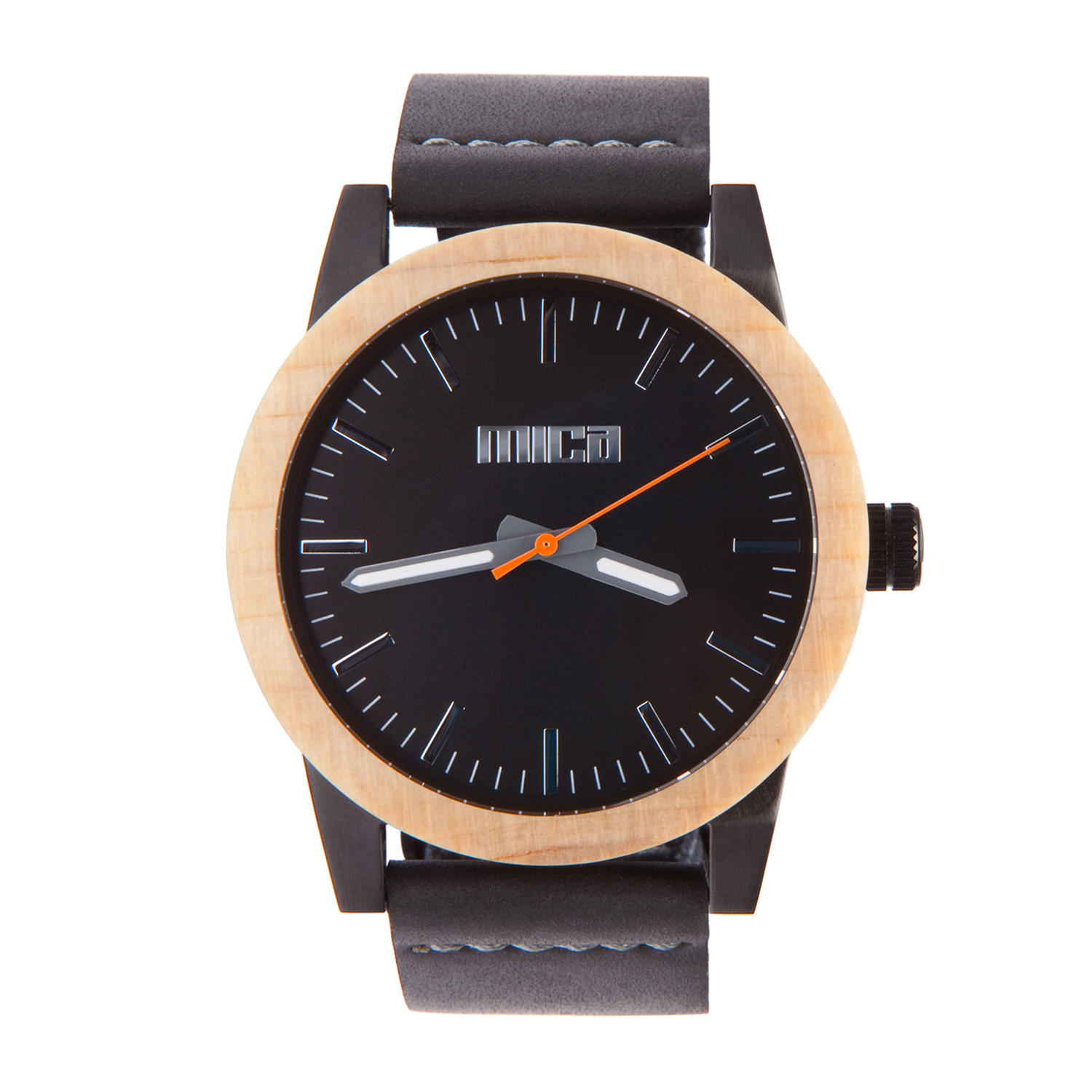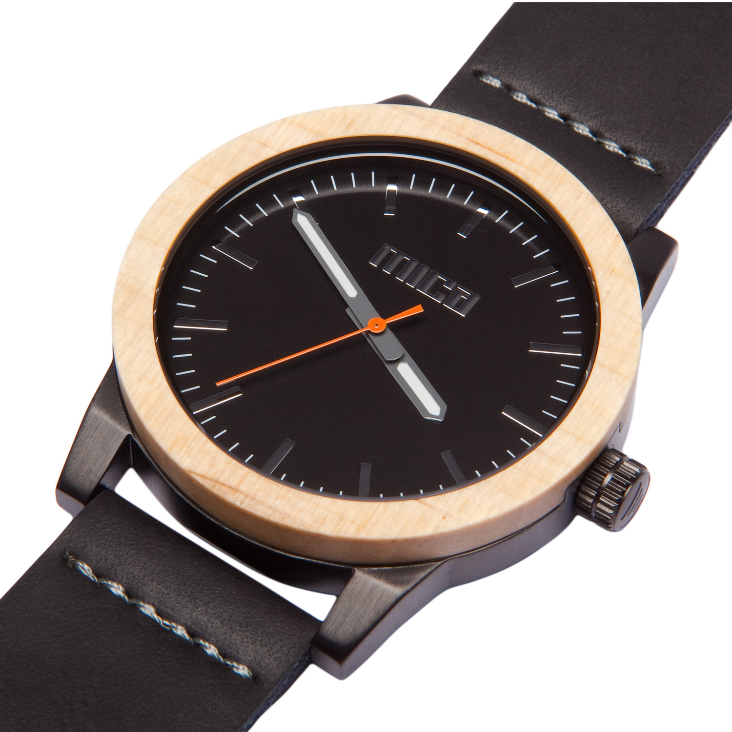 The Morris collection from Mica is characterized by its minimalist, high-contrast dial, and its unusual wooden bezel. Offering a subtle, but still distinctive vintage flair, every watch looks equally at home on the wrist of design-savvy urban dweller, or the wrist of silver screen stars of the 1960s.