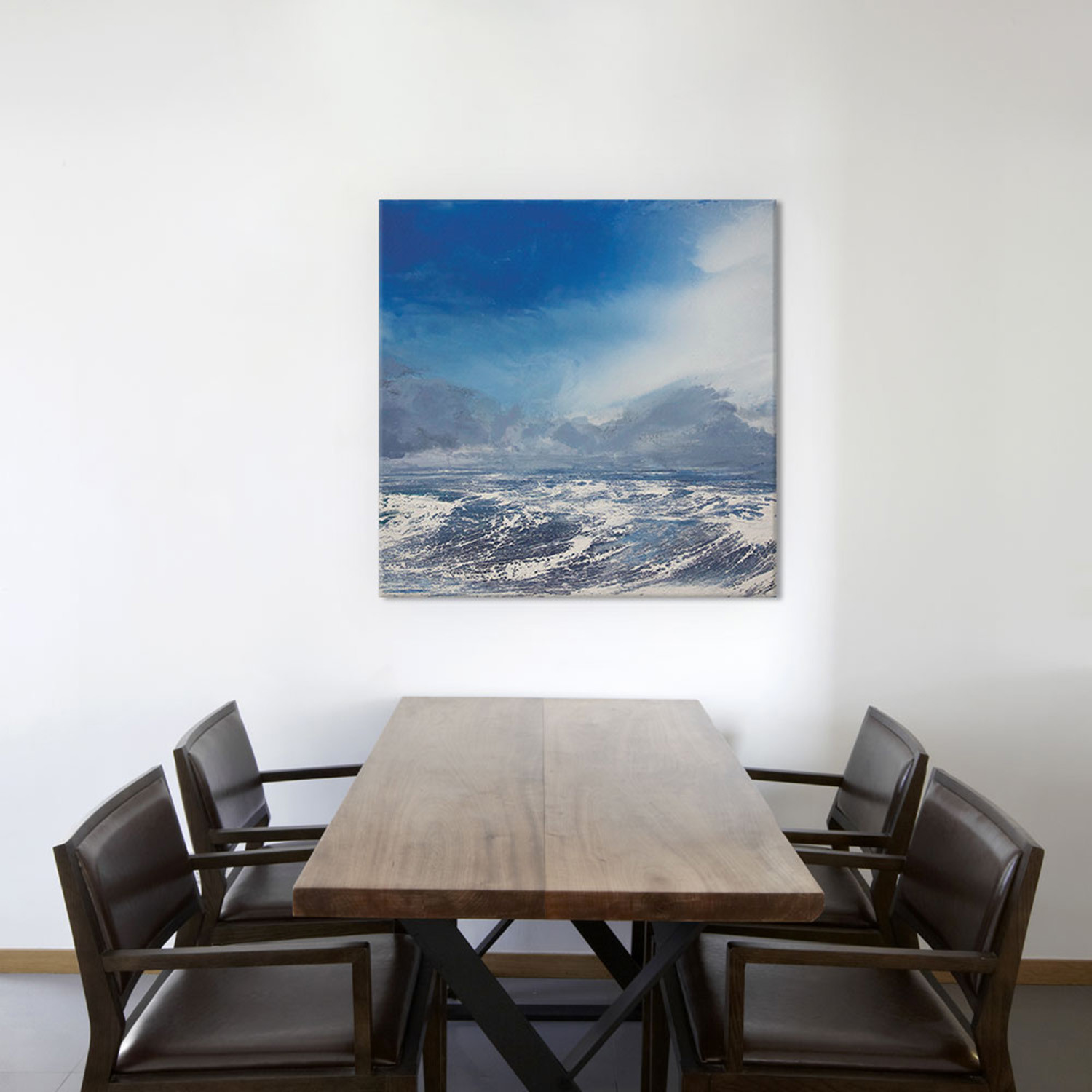 Reflect on the colors, layers and different energies of a given space, with this photorealistic seascape by painter Michael Sole. Complex and intriguing, it will change the mood of any room, and plunge you into a world of self-reflection and a coherent composition of natural scenery.
