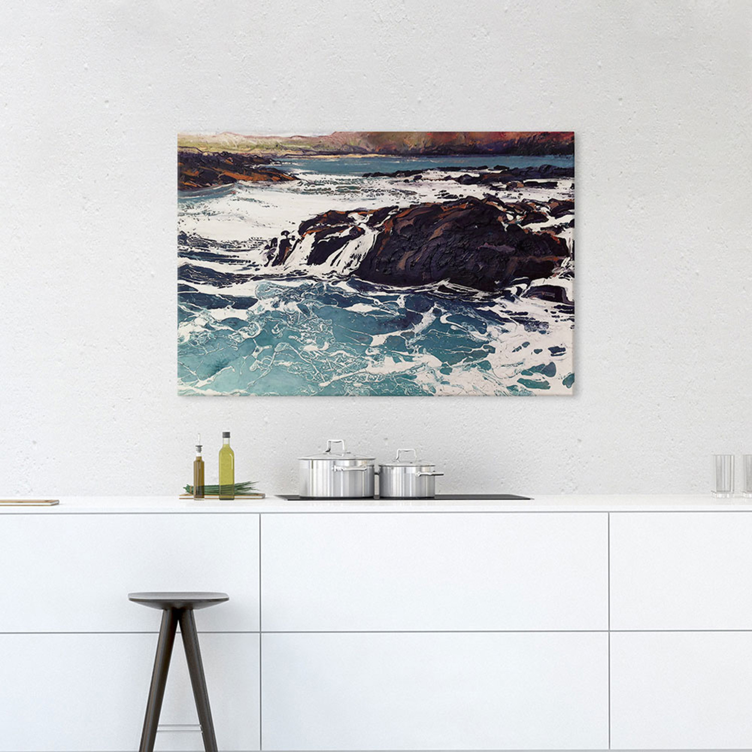 Reflect on the colors, layers and different energies of a given space, with this photorealistic seascape by painter Michael Sole. Complex and intriguing, it will change the mood of any room, and plunge you into a world of self-reflection and a coherent composition of natural scenery.
