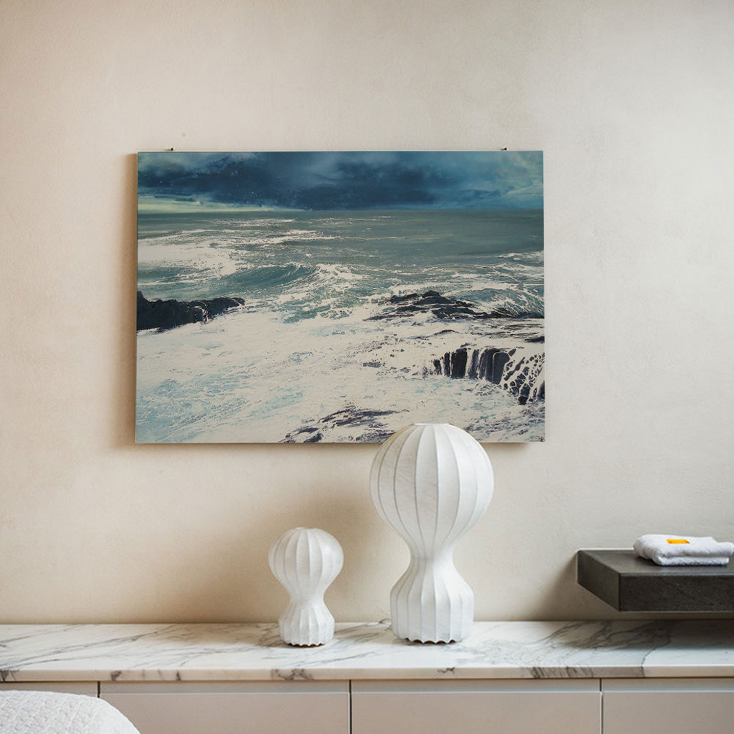 Reflect on the colors, layers and different energies of a given space, with this photorealistic seascape by painter Michael Sole. Complex and intriguing, it will change the mood of any room, and plunge you into a world of self-reflection and a coherent composition of natural scenery.