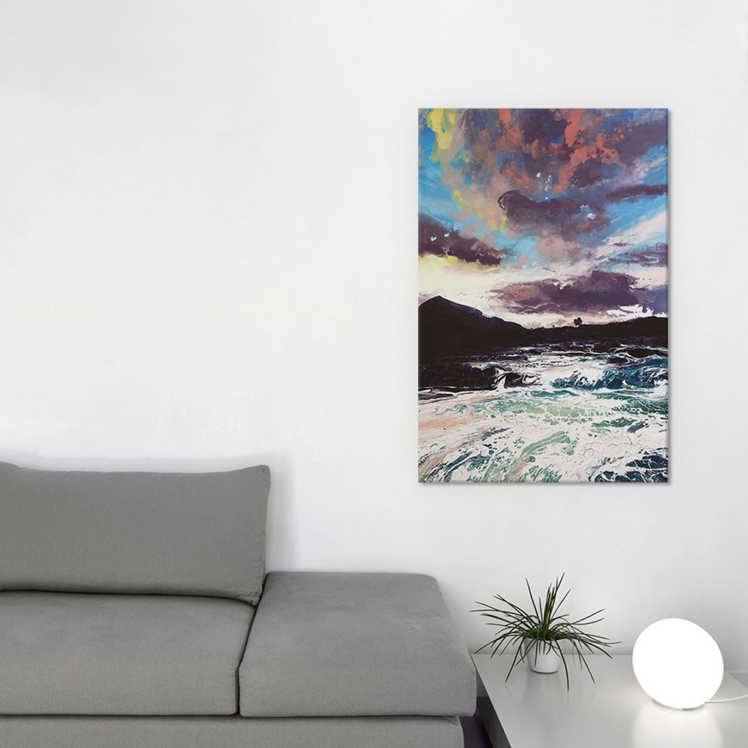 Reflect on the colors, layers and different energies of a given space, with this photorealistic seascape by painter Michael Sole. Complex and intriguing, it will change the mood of any room, and plunge you into a world of self-reflection and a coherent composition of natural scenery.