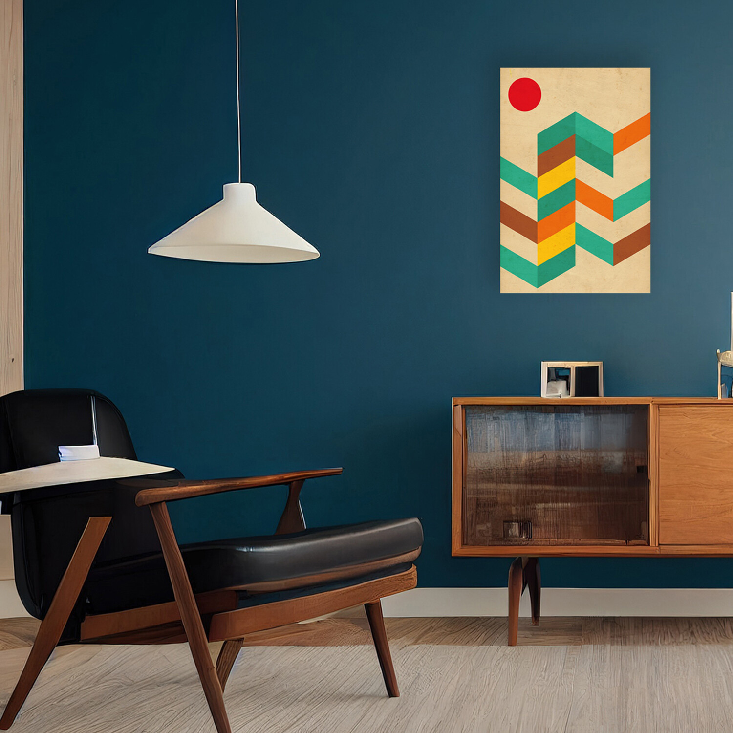Geometric Landscape With Sun Print On Acrylic Glass by Nouveau Prints