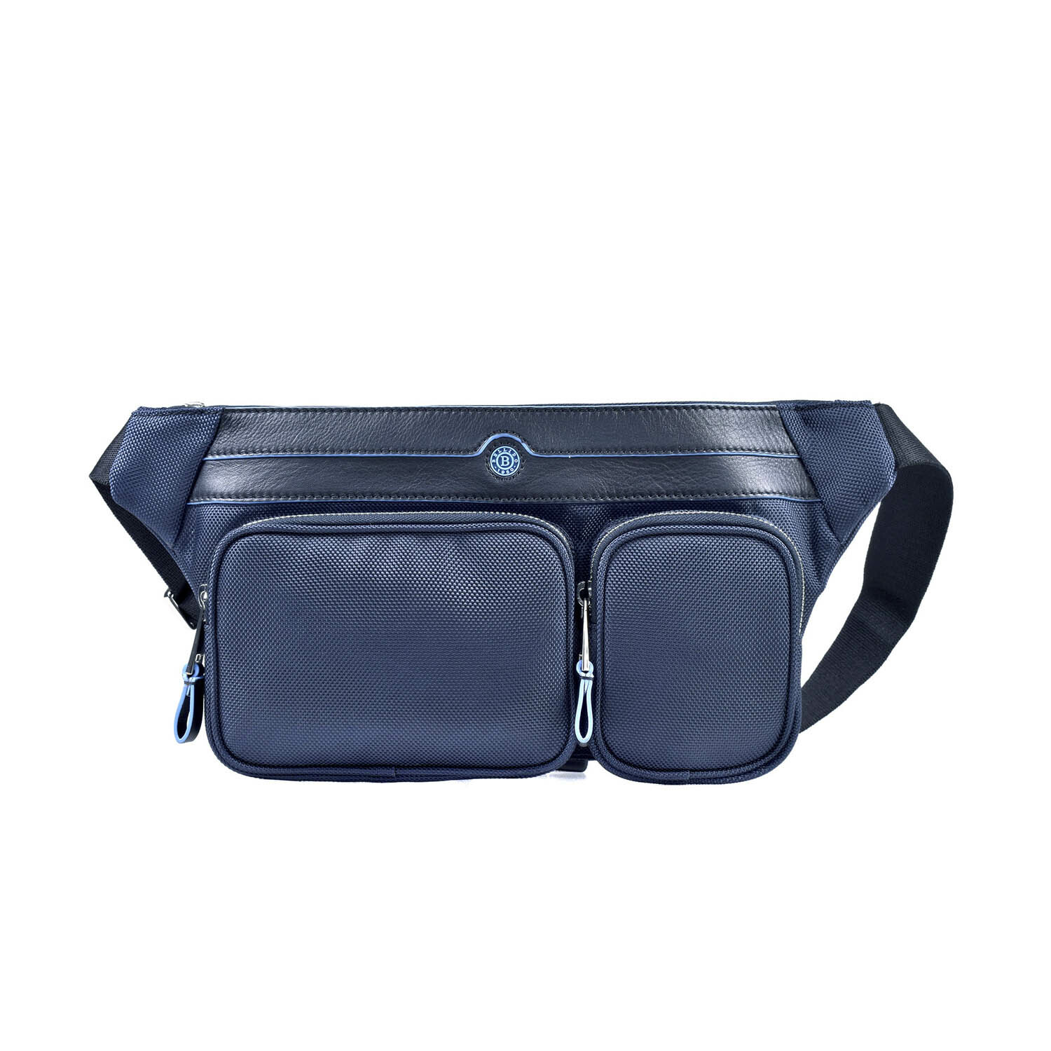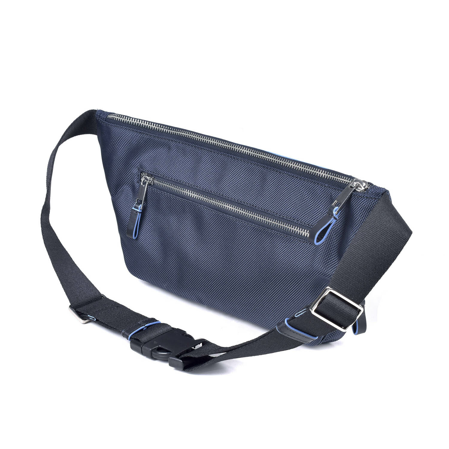 — Belt Pouch Made of Techno Fabric with Blue Details of Genuine Cowhide