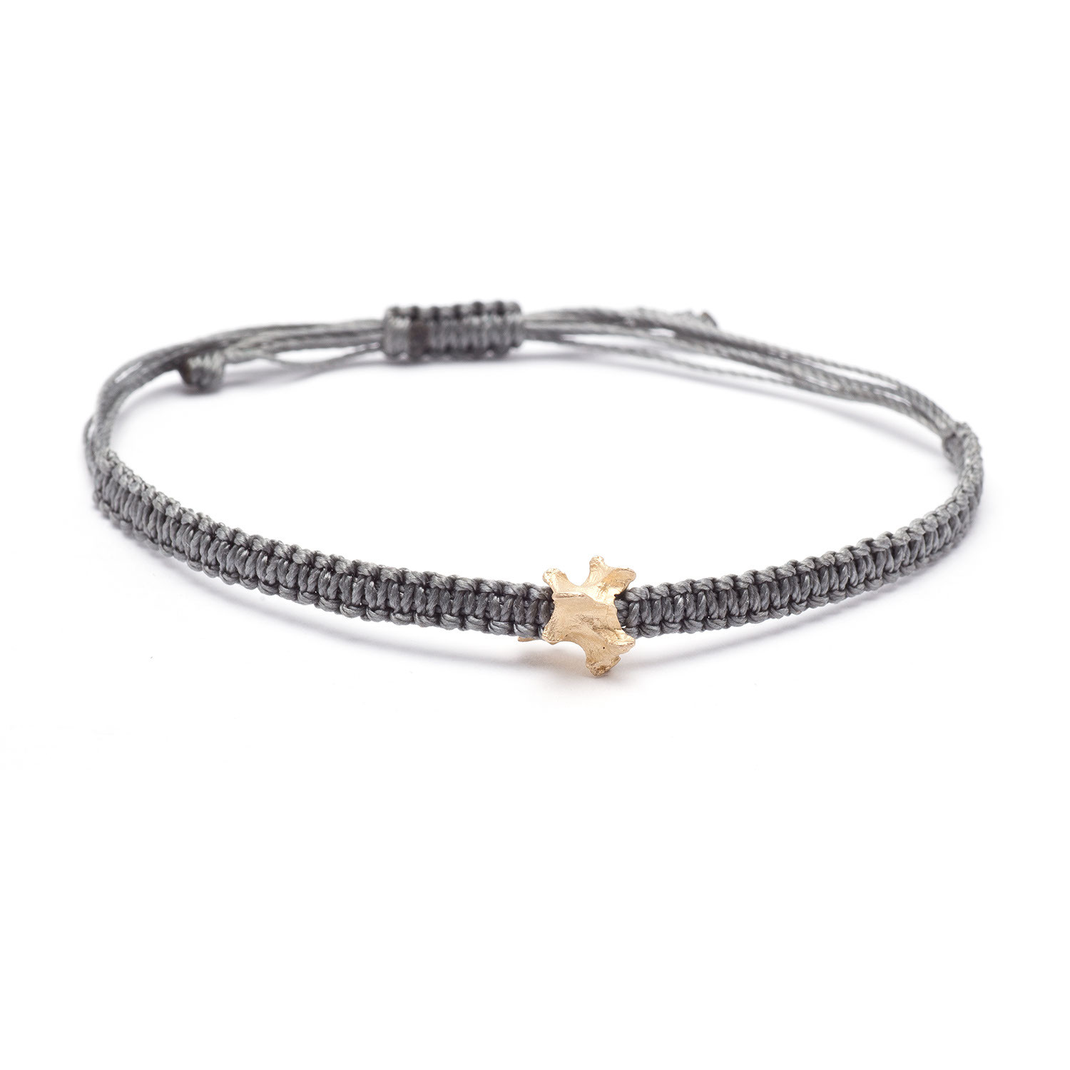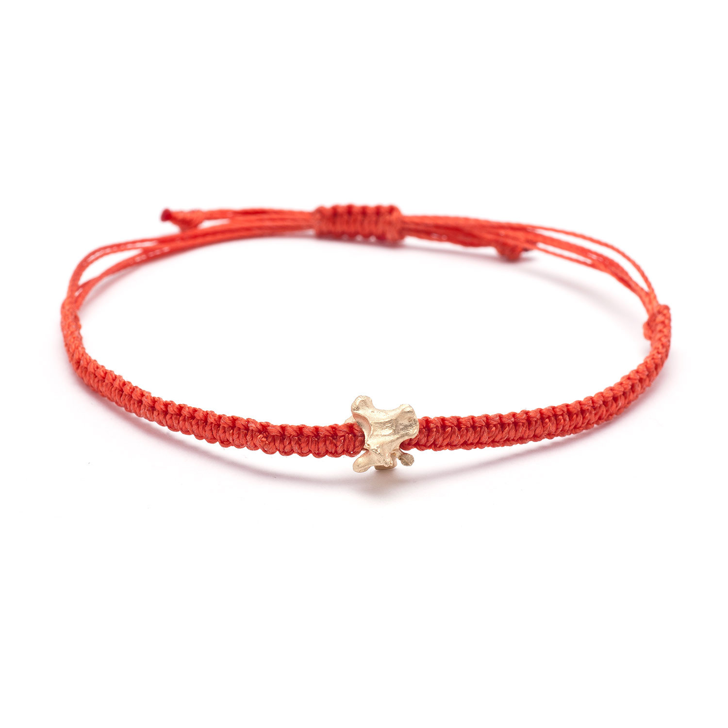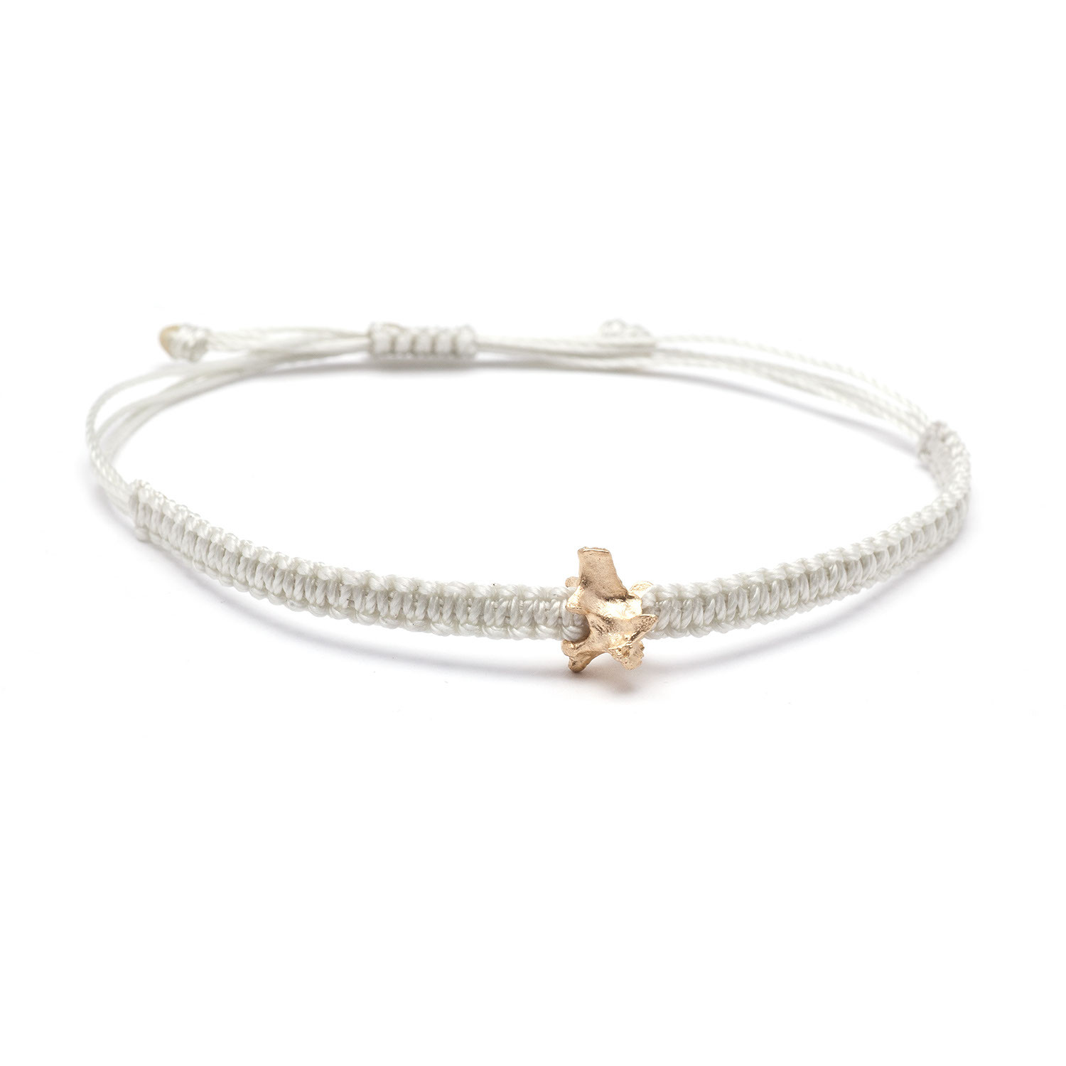 A vertebrae cast in solid 14K gold on an adjustable woven band is the ultimate wear-all-the-time piece. The more it’s worn, the more this bracelet will evolve on the wearer.