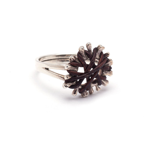 This Vertebrae Ring is cast from solid sterling silver. With a contrasting leather weave, it packs a seriously handsome punch.