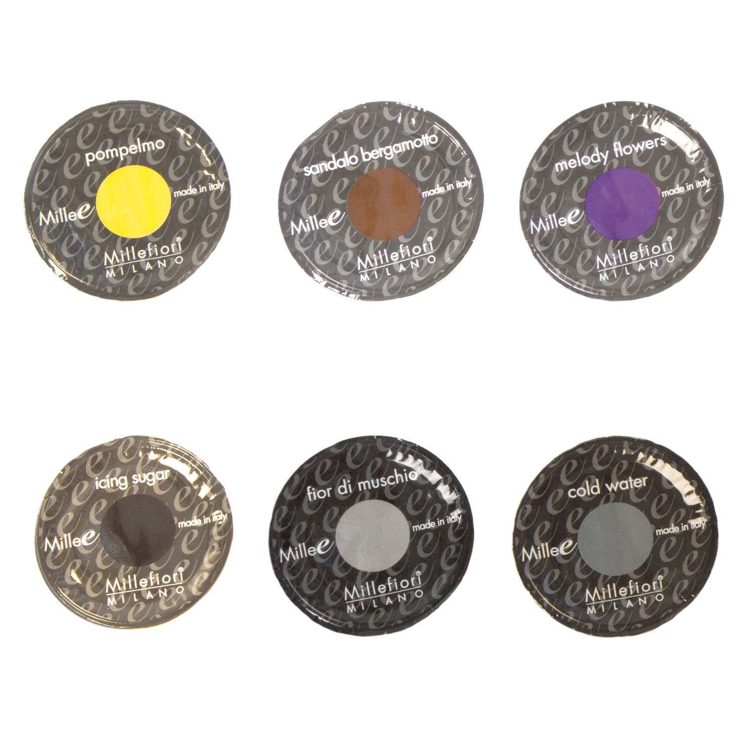 Alter your aromatic atmosphere with these six interchangeable Millee fragrances from the Living Selection. The six capsules include cold water, fior de muschio, icing sugar, melody flowers, pompelmo, and sandalo bergamotto. See the details below for a brief description of each enchanted scent.