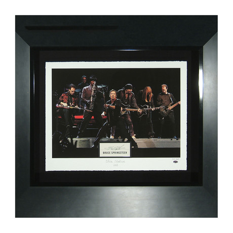 This limited edition music merchandise display is designed to help you preserve pop culture history. Featuring a fine art photograph from his 2003 concert at Shea Stadium, the last show of the 2002-03 World Tour, this collector's item has also been autographed by hand by Bruce Springsteen himself.