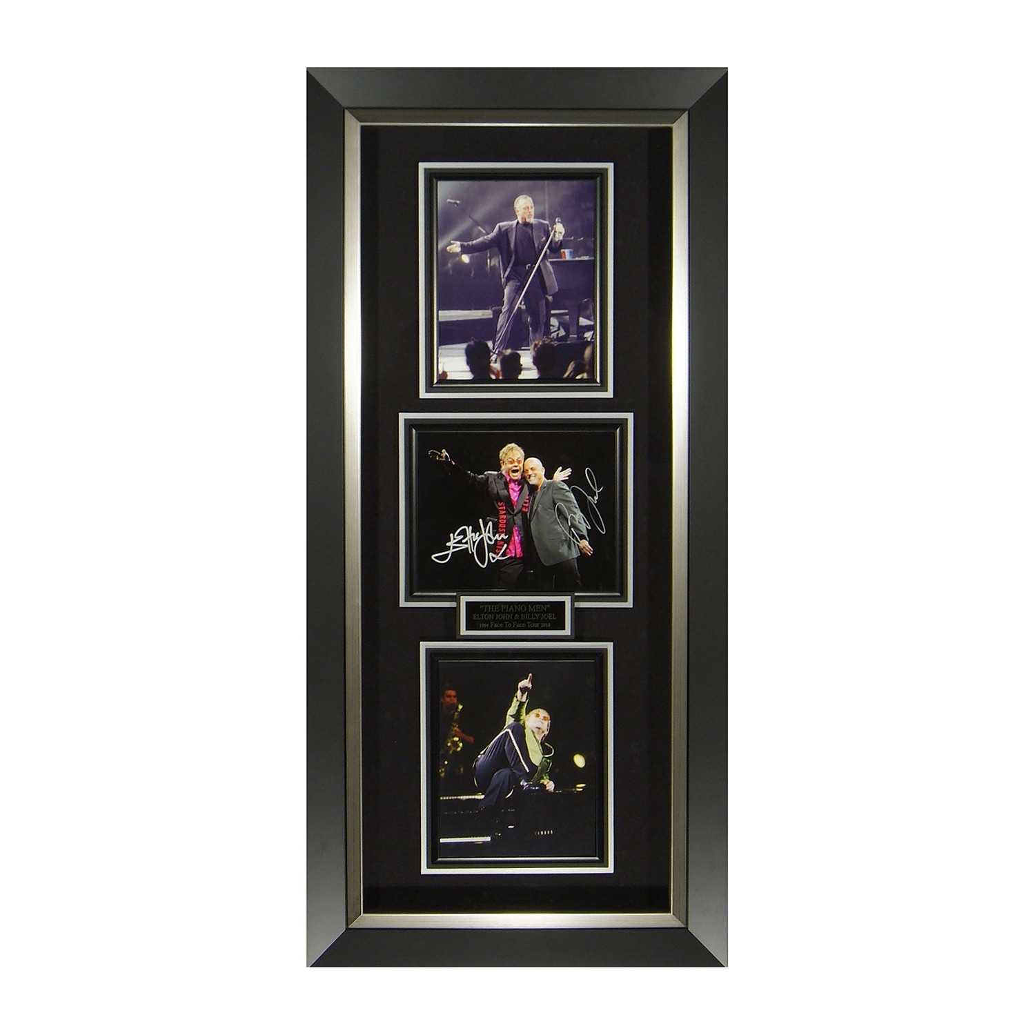 This limited edition music merchandise display is designed to help you preserve pop culture history. Featuring a concert photograph from the Face to Face Tour, this collector's item has been autographed by hand in silver paint pen by Billy Joel and Elton John.
