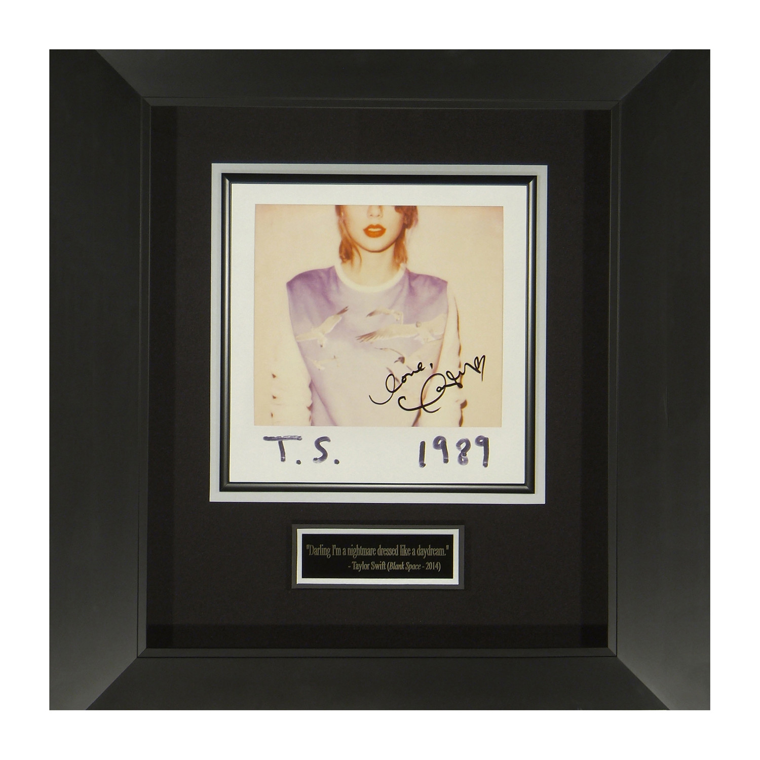 This limited edition music merchandise display is designed to help you preserve pop culture history. Featuring a 12"x12" album flat for the 2014 release of 1989, this collector's item has been autographed by hand in black marker by Taylor Swift herself.