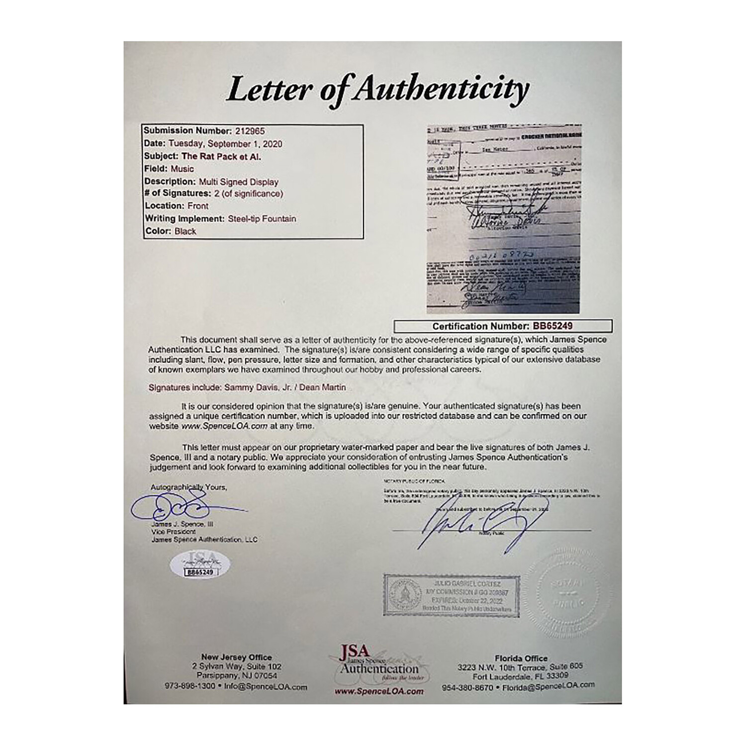 — Hand Signed By Frank Sinatra, Sammy Davis Jr. Dean Martin, and Peter Lawford