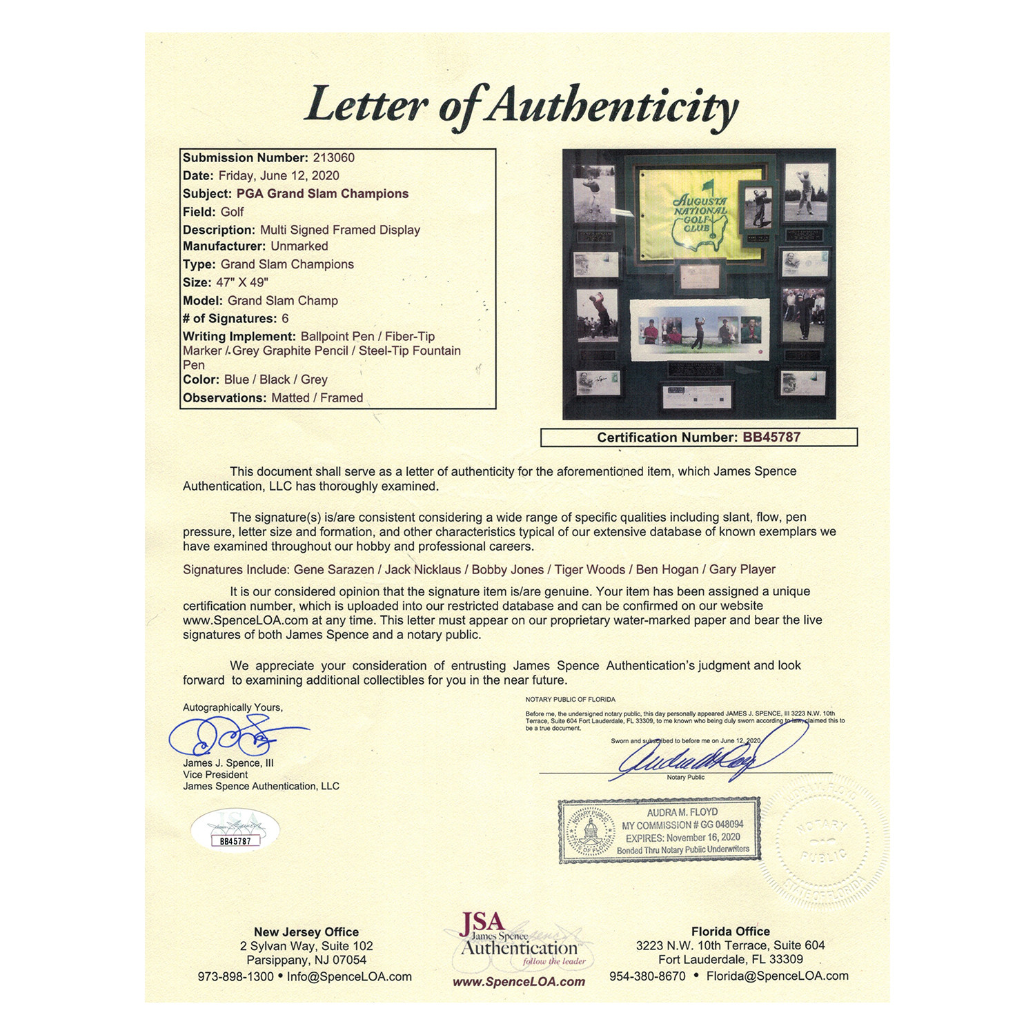 — Hand Signed By Gene Sarazen, Bobby Jones, Ben Hogan, Gary Player, Jack Nicklaus, & Tiger Woods