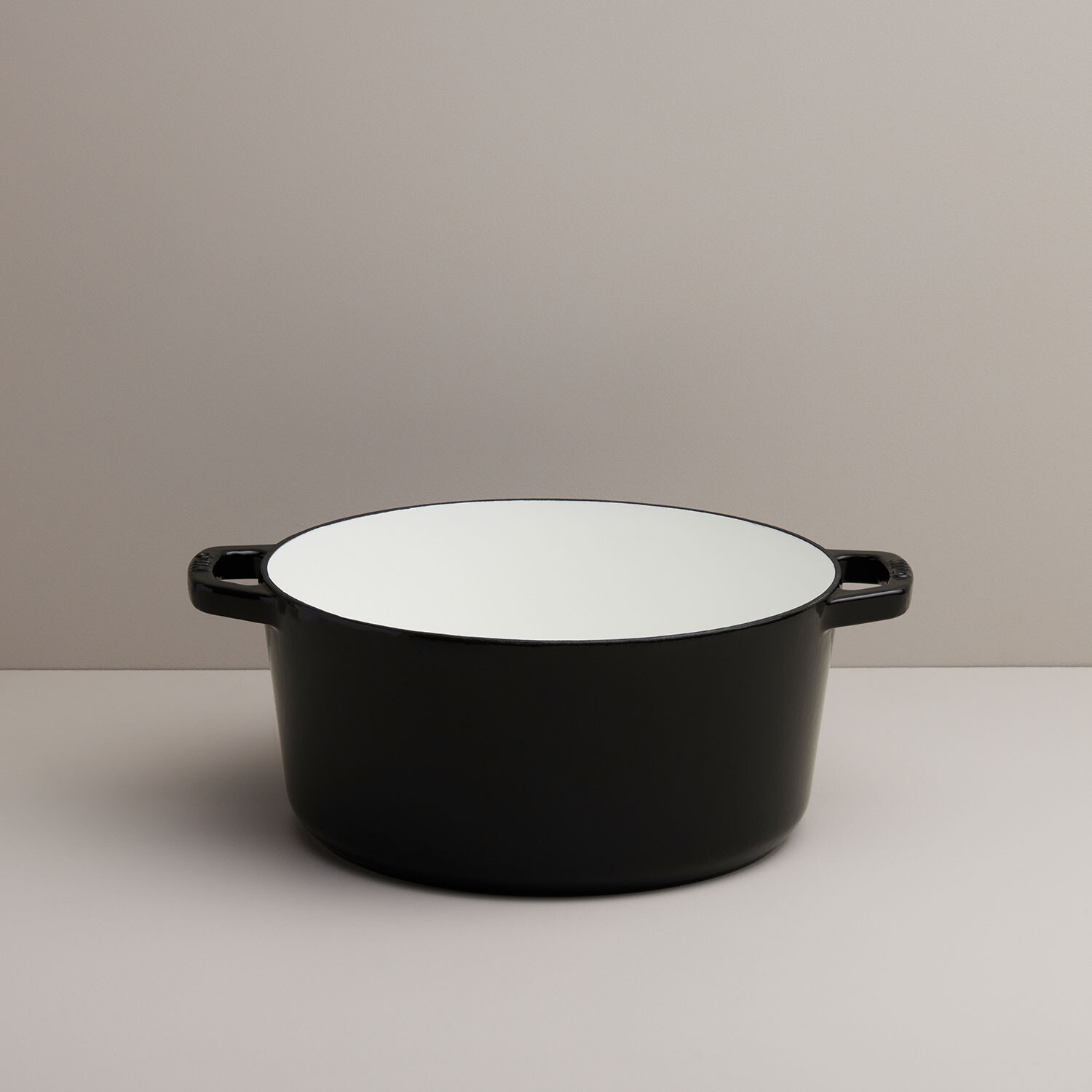 Made from 40% recycled cast-iron, this pre-seasoned cast-iron cookware is finished with two layers of painted enamel from TOMATEC© to enhance lifetime durability and performance. The modern spray technique ensures a homogenous finish that eliminates the weak spots that can be found in cheaper alternatives. The 4.5mm base strikes the ideal balance between heat distribution and retention for superb cooking results every time. The 3.8mm walls reduce any unnecessary heft and add the perfect touch of modern flair to any kitchen.