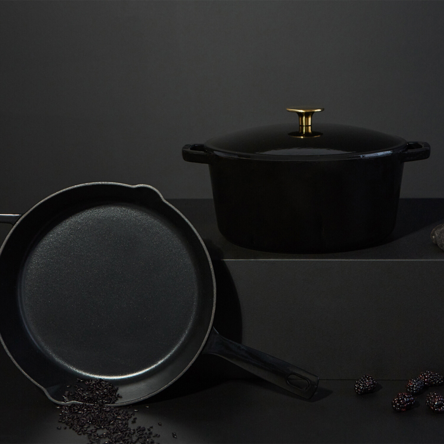 From the earliest stages of the design process, every detail was carefully considered to provide home chefs with an ergonomic and thoughtful cooking experience. The design was influenced by the rich history of cast iron cookware from eastern and western cultures around the world, specifically 17th-century Nambu ironware from Japan and 19th-century American cookware. By combining eastern and western design aesthetics, Milo cookware celebrates the relationship between durable materials, minimal forms, and function that anyone can rely on.