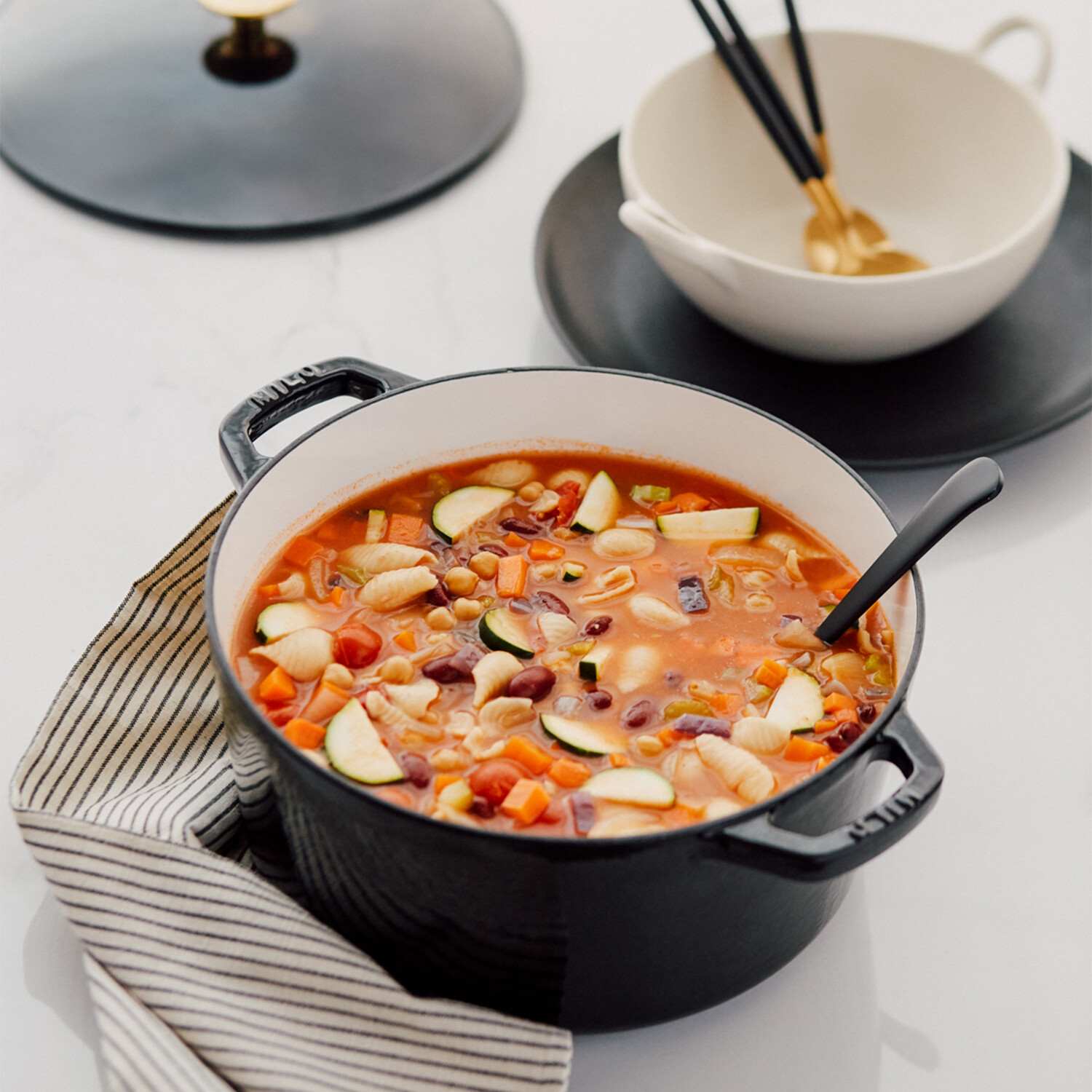 The Classic Dutch Oven is ideal for family-size meals. Use it as a deep fryer, a boil pot, or a casserole dish that effortlessly goes from the stove, to the oven, to the table. The Ultimate Skillet delivers quality heat distribution, even cooking, and durability without the complicated care rituals of raw cast iron. Ready to go out of the box, both are oven-safe to 500℉ , compatible with all stovetops, and even dishwasher friendly!