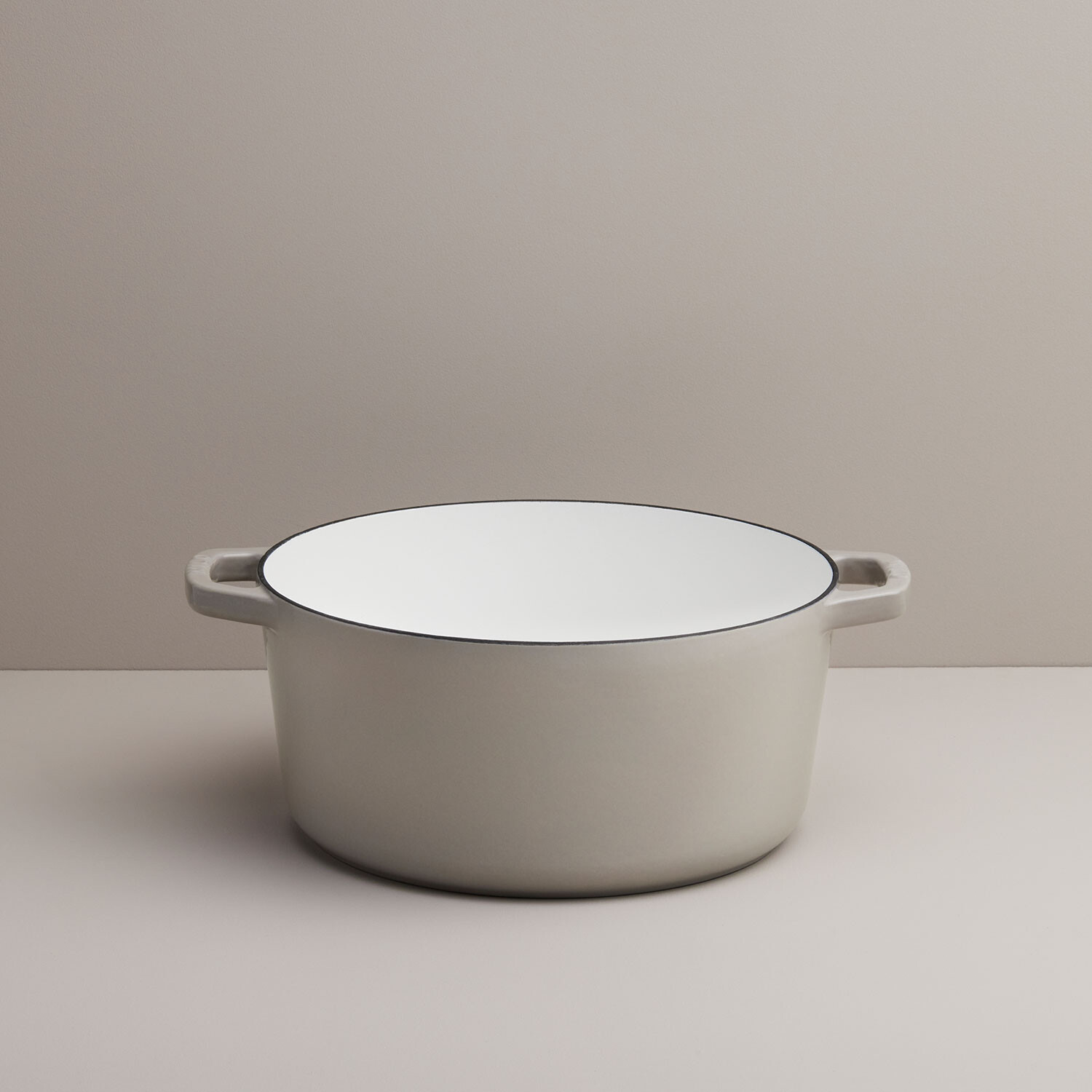 Made from 40% recycled cast-iron, this pre-seasoned cast-iron cookware is finished with two layers of painted enamel from TOMATEC© to enhance lifetime durability and performance. The modern spray technique ensures a homogenous finish that eliminates the weak spots that can be found in cheaper alternatives. The 4.5mm base strikes the ideal balance between heat distribution and retention for superb cooking results every time. The 3.8mm walls reduce any unnecessary heft and add the perfect touch of modern flair to any kitchen.