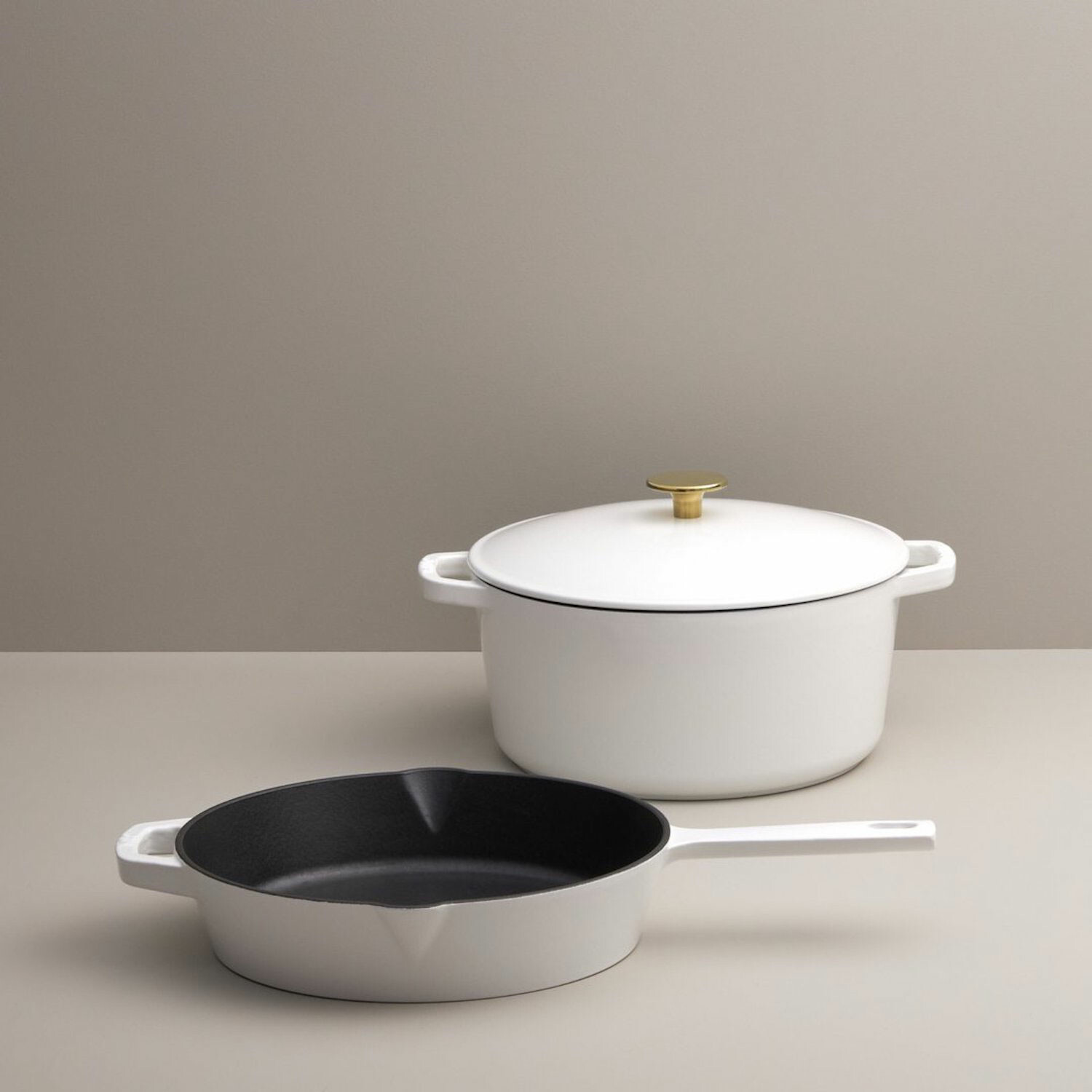 The Classic Dutch Oven is ideal for family-size meals. Use it as a deep fryer, a boil pot, or a casserole dish that effortlessly goes from the stove, to the oven, to the table. The Ultimate Skillet delivers quality heat distribution, even cooking, and durability without the complicated care rituals of raw cast iron. Ready to go out of the box, both are oven-safe to 500℉ , compatible with all stovetops, and even dishwasher friendly!
