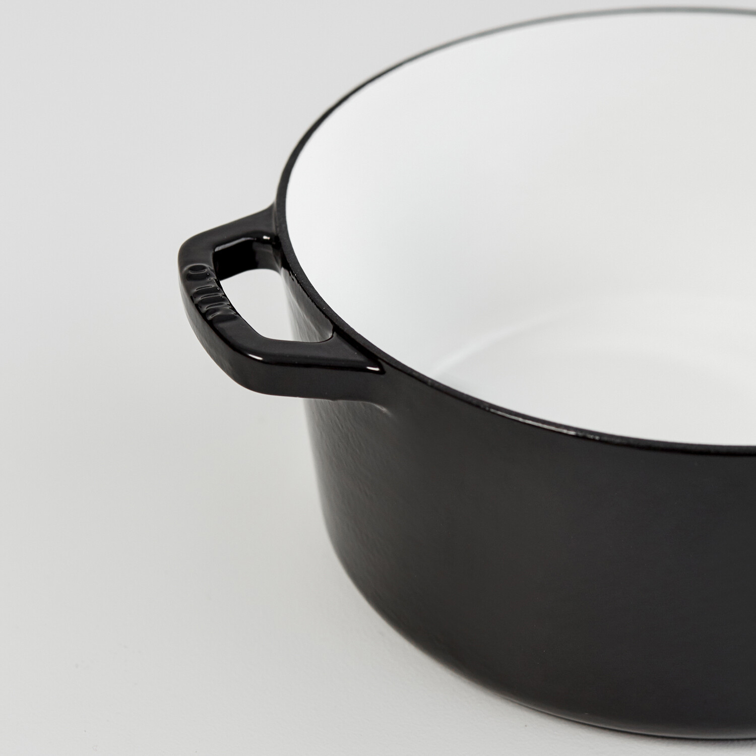 Made from 40% recycled cast-iron, this pre-seasoned cast-iron cookware is finished with two layers of painted enamel from TOMATEC© to enhance lifetime durability and performance. The modern spray technique ensures a homogenous finish that eliminates the weak spots that can be found in cheaper alternatives. The 4.5mm base strikes the ideal balance between heat distribution and retention for superb cooking results every time. The 3.8mm walls reduce any unnecessary heft and add the perfect touch of modern flair to any kitchen.