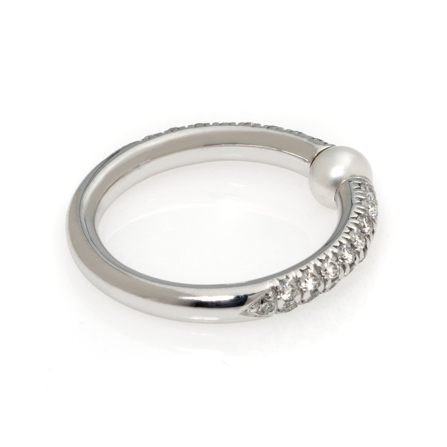 Mimi Milano Nagai Sirenette 18k White Gold Diamond + Pearl Ring // Ring Size 6.75
