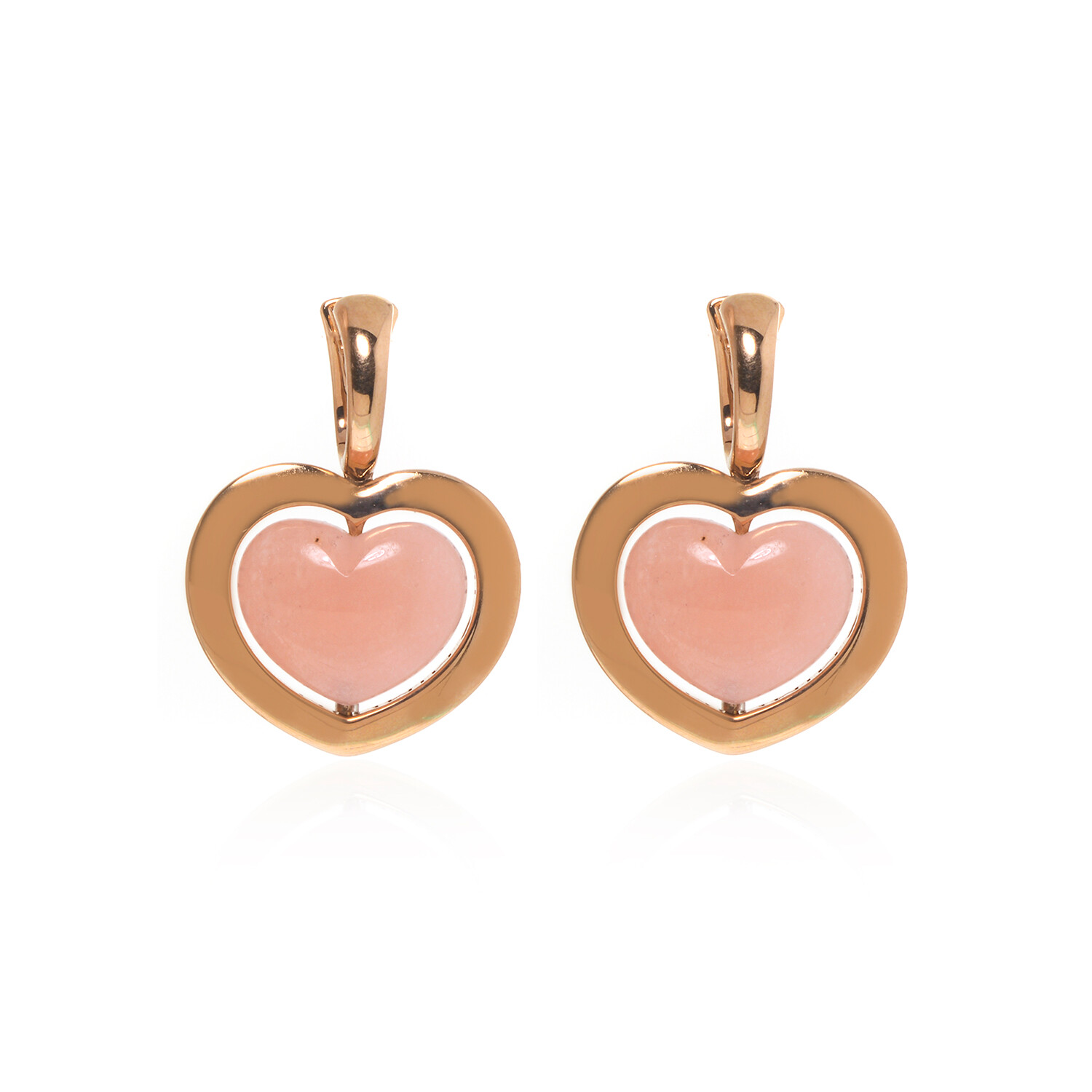 Giulietta E Romeo 18k Rose Gold + Rose Quartzite Heart Earrings // Store Display