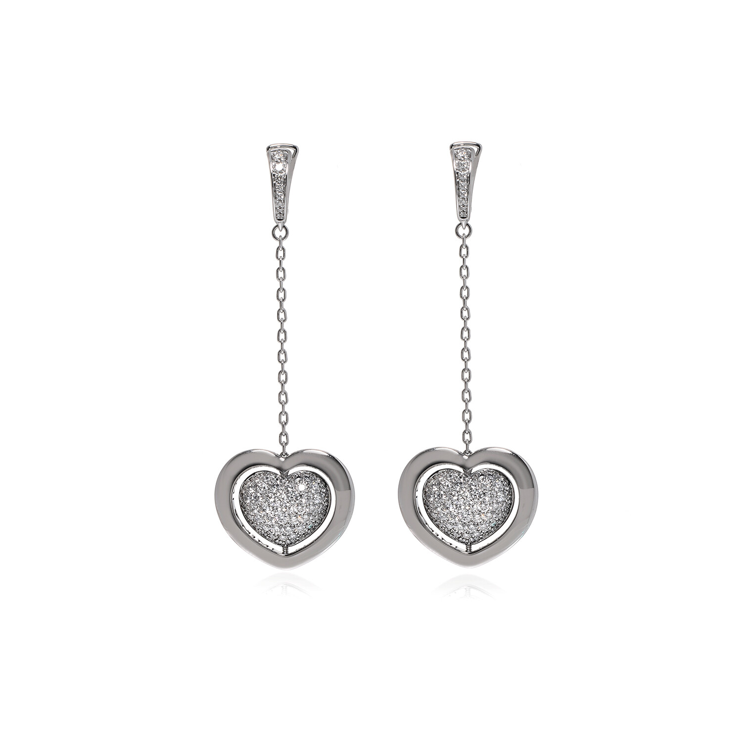 Giulietta E Romeo 18k White Gold + Diamond Heart Dangle Earrings // Store Display
