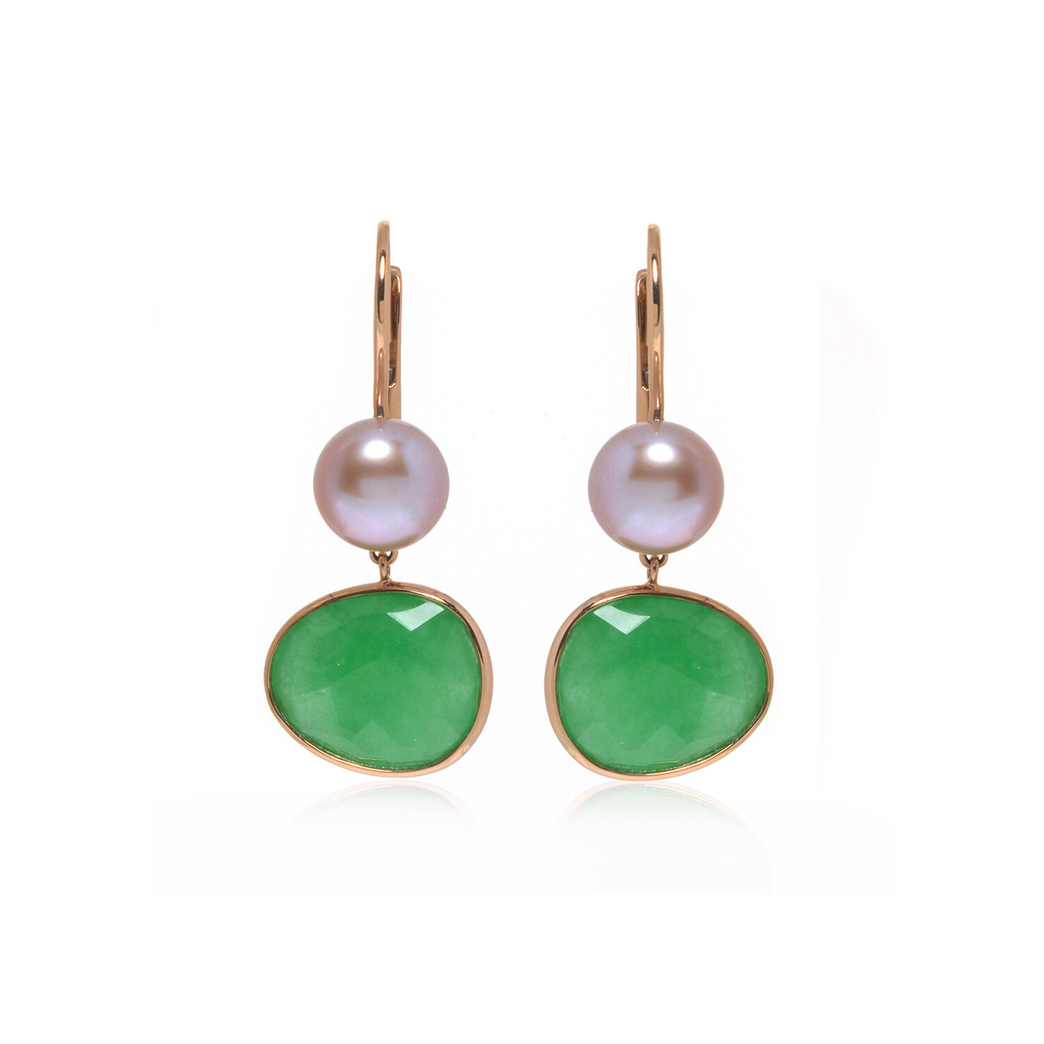 Talita 18k Rose Gold + Green Jade + Pink Pearl Dangle Earrings // Store Display