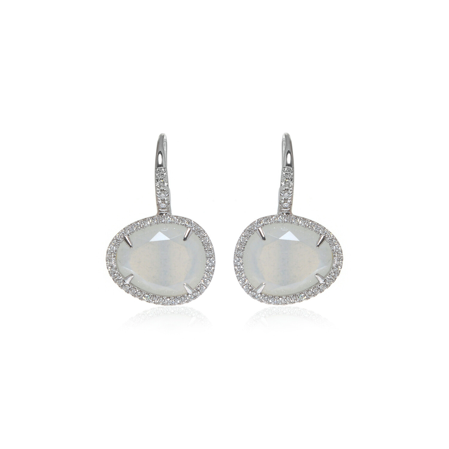Talita 18k White Gold + Diamond + Moonstone Drop Earrings // Store Display