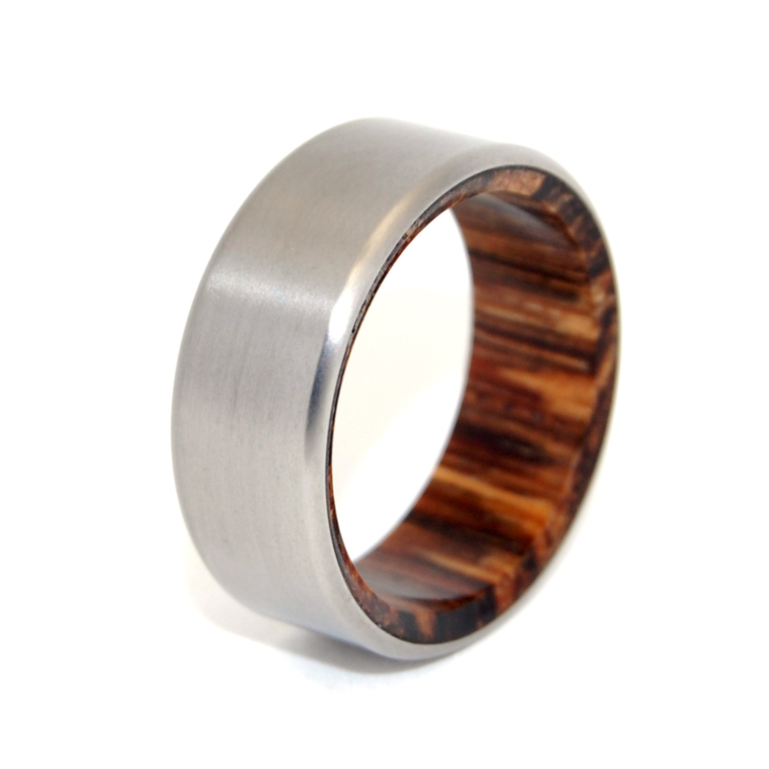 All Tales of Eden bring to mind a natural haven made of the richest woods in the world. This delicate ring has an absolutely perfect interior overlay of Red Palm wood, which is rich in color and texture. Each titanium ring is durable and lightweight, and machined to perfection. They are perfect as wedding bands, or just as a reward for your great taste.