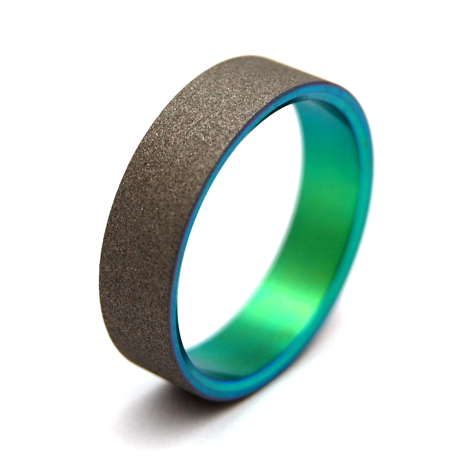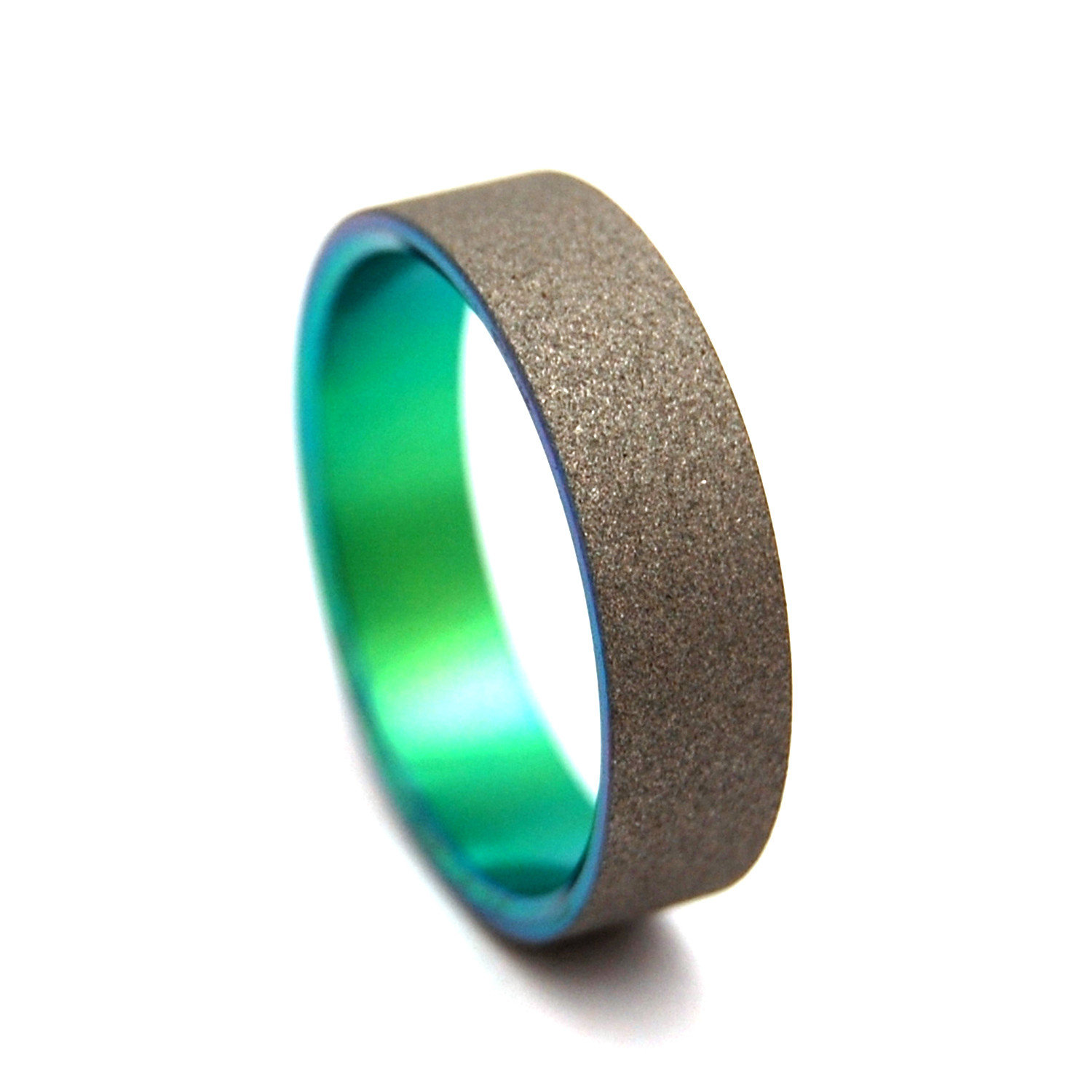 Mysterious, bold, and eye catching, this collection of sleek, minimalist rings from Minter & Richter pays homage to the sci-fi mystery thriller, Blade Runner 2049. Inspired by the mood and coloring of this futuristic noir series, 6-10-21 is made from pure titanium which has been anodized the brilliant green color seen throughout the film.