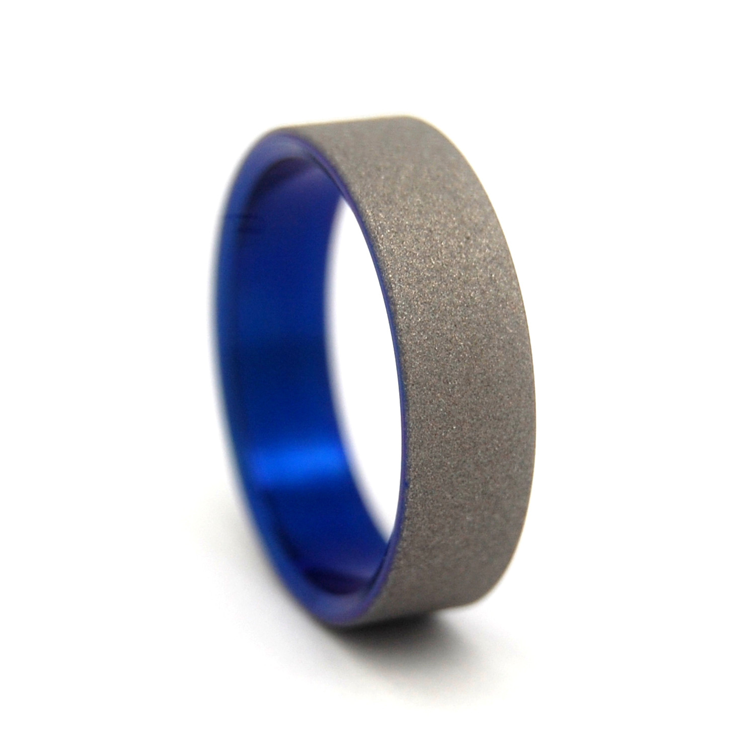 Mysterious, bold, and eye catching, this collection of sleek, minimalist rings from Minter & Richter pays homage to the sci-fi mystery thriller, Blade Runner 2049. Inspired by the mood and coloring of this futuristic noir series, Off World is made from pure titanium which has been anodized the interstellar blue color seen throughout the film.