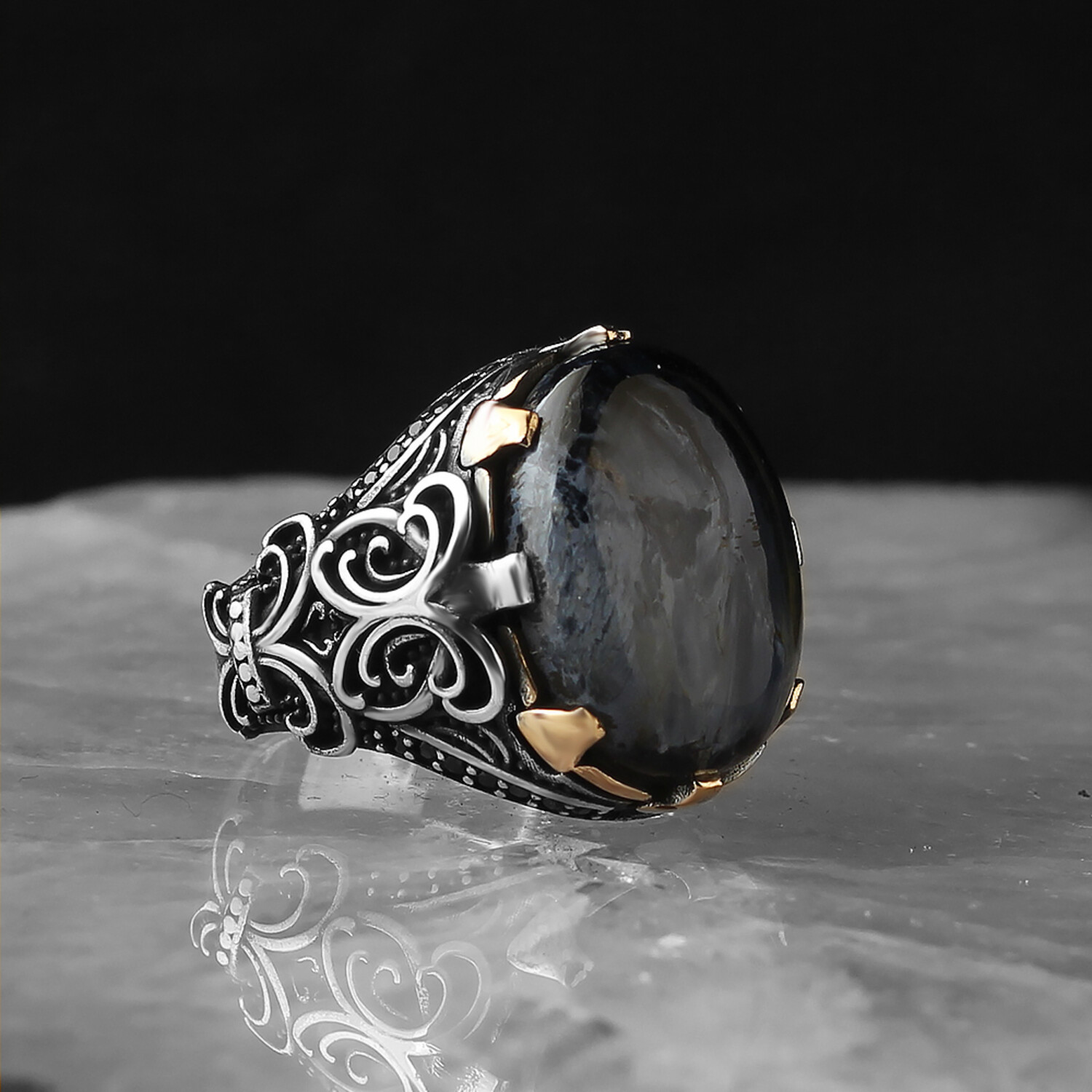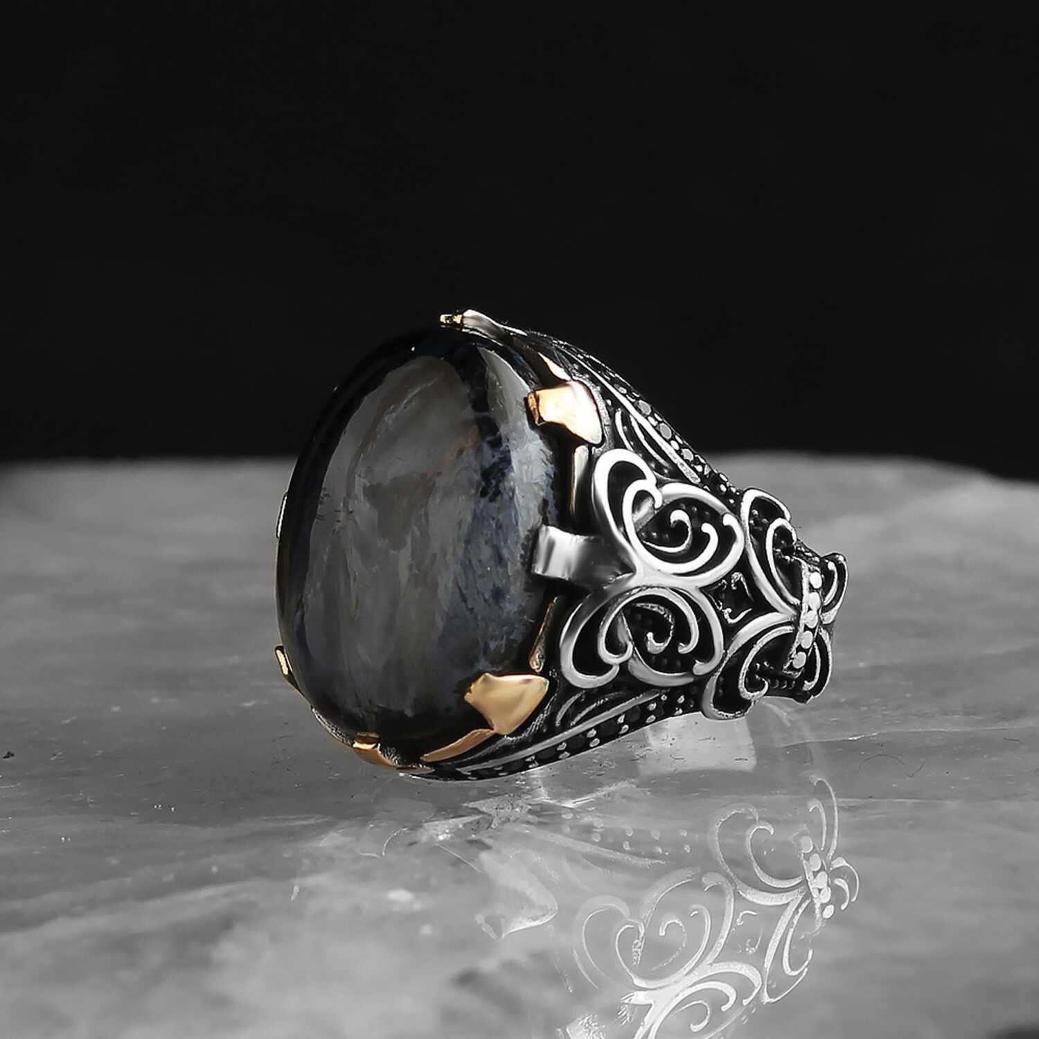 925 Sterling Silver Genuine Pietersite Stone Claw Shape Ring // V2