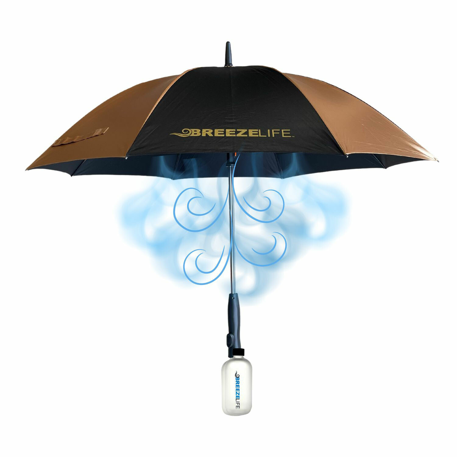 Rechargeable MisterBreeze Misting Umbrella // Black & Gold