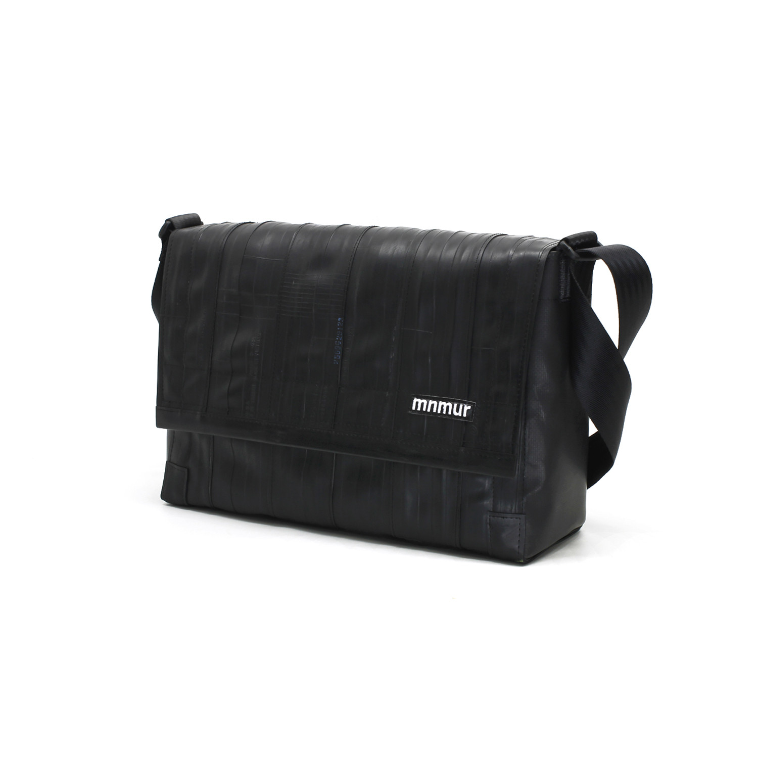 This bag was upcycled from utilitarian materials into a gorgeous messenger bag for you. With room for your 15" laptop, this piece is perfectly functional with superior details. It has two internal pockets, black fabric lining and it's waterproof.