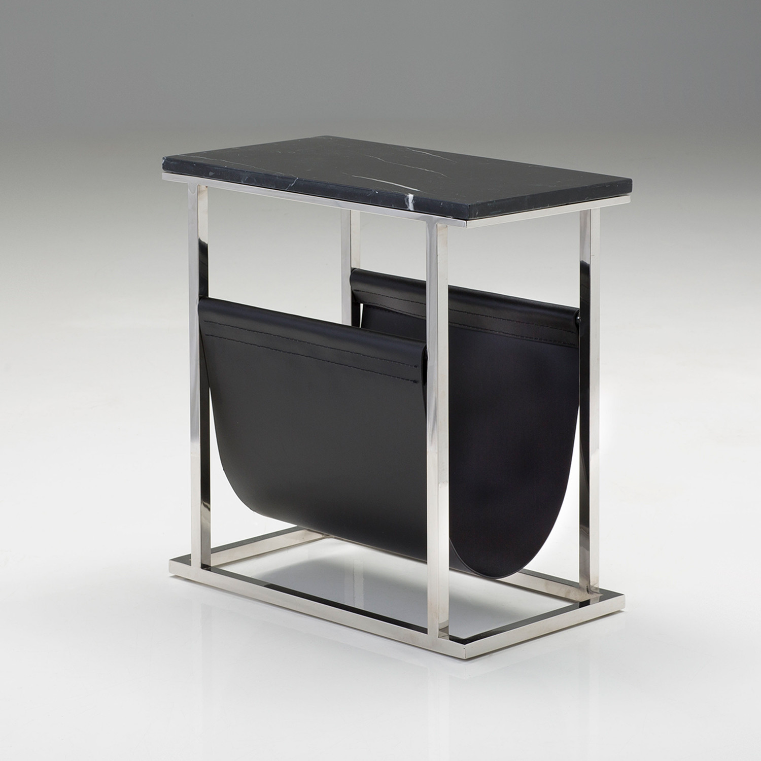 Cor Magazine Rack // Black Marble Black Leather Magazine Sling + Polished Stainless Steel