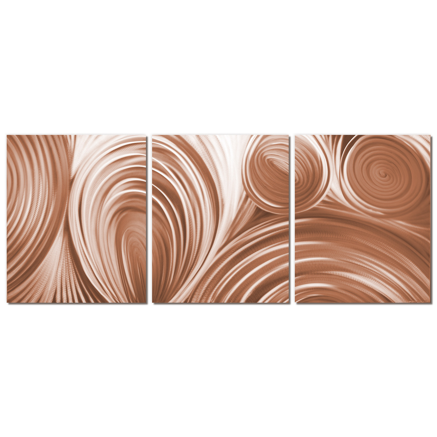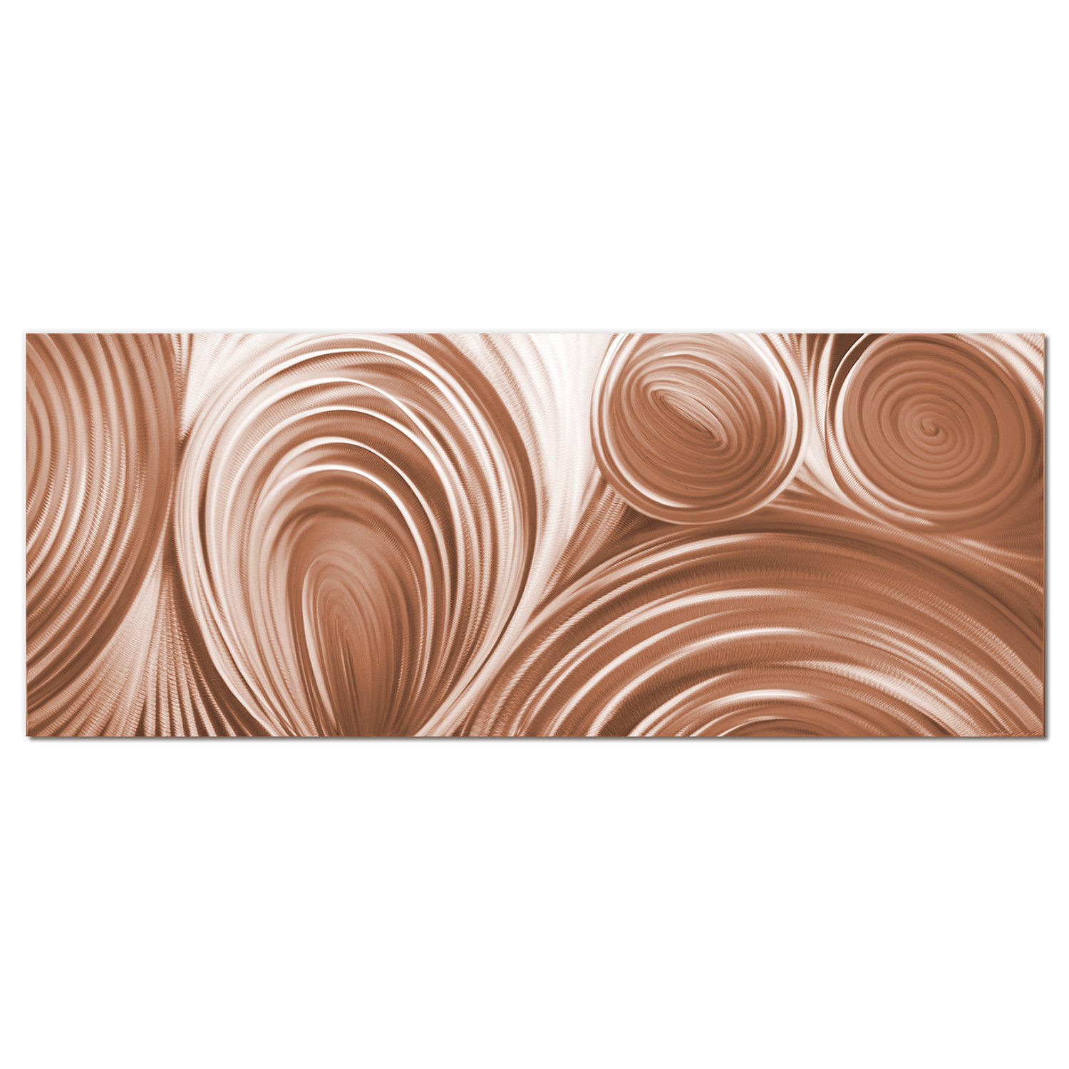 A perfect addition to the contemporary home, Conduction was expertly crafted to express the pure passion of the artist, and is now offered in pure, natural copper. Through the masterful use of multiple grinding, sanding, and polishing techniques, artist Nicholas Yust has created an amazing three-dimensional illusion in the circular designs on this multi-panel metal wall sculpture.