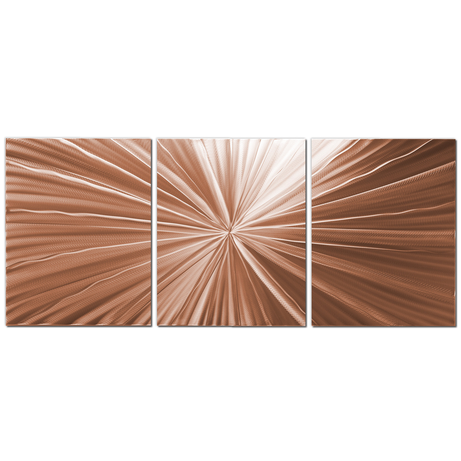 Tantalum is just one of the hypnotic designs done by Nicholas Yust, now crafted in pure, natural copper. His masterful use of simple lines to create an incredible finished product is absolutely breathtaking. One of the comments that is often made about this piece is that the viewer cannot quite tell whether the lines are bursting from the center, or moving from the outside inward. Some people have even mentioned feeling like they are being sucked into the artwork and warped into another dimension as they get lost in the starburst image.