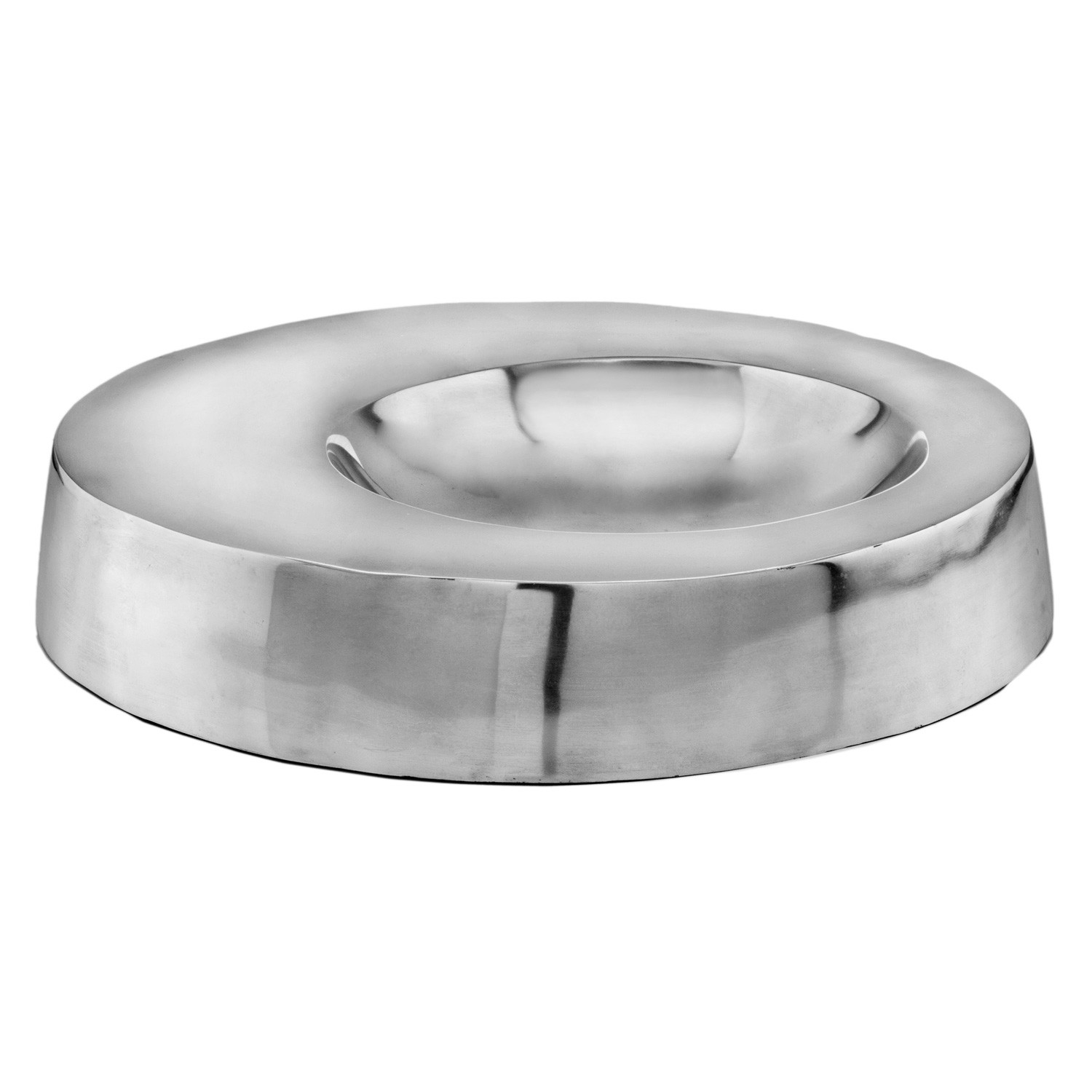 This heavy, buffed aluminum bowl features an unbalanced center chamber for a striking, unique piece of decor that will spice up any room.