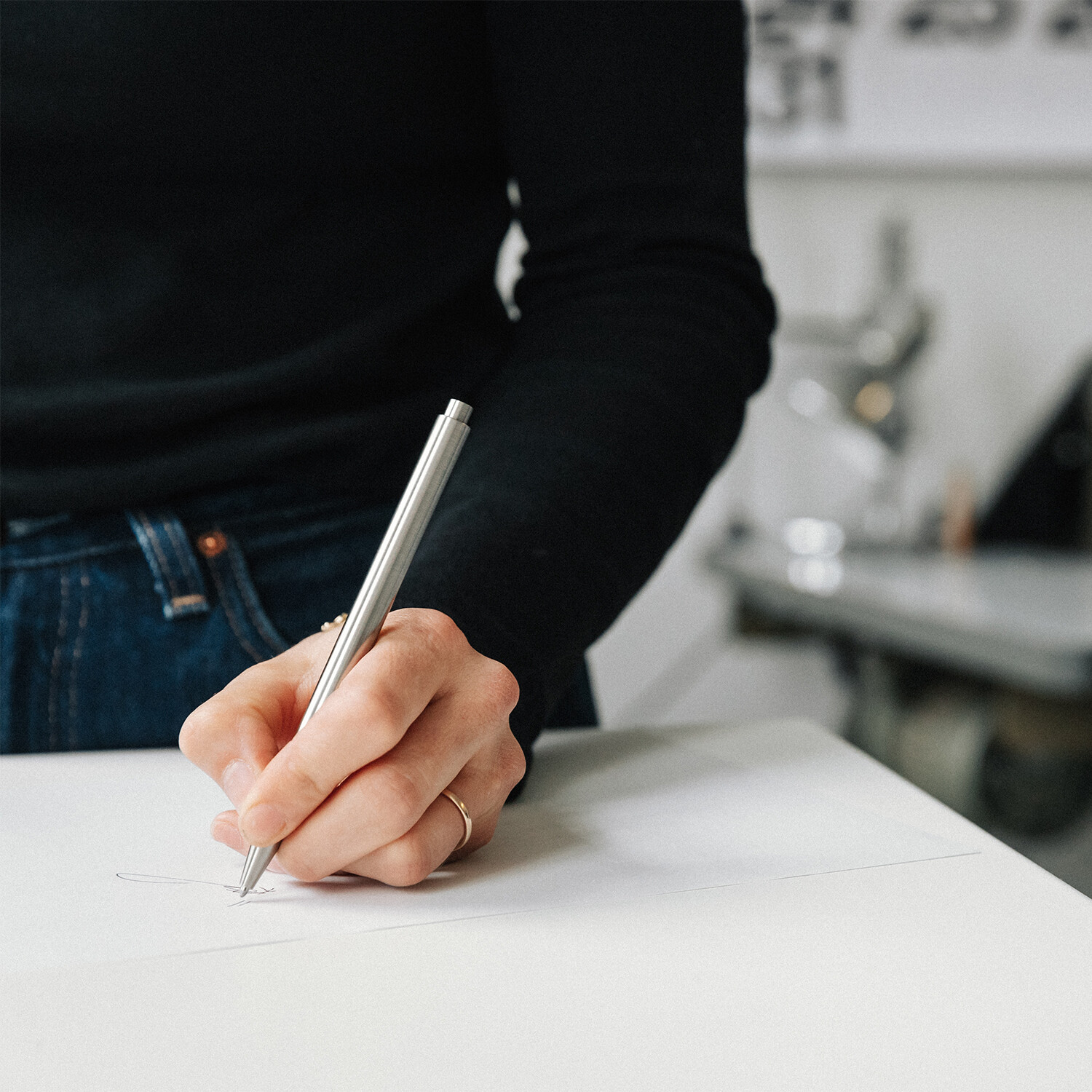 Every Modern Fuel pen is carved out of a solid block of metal and contains no plastic parts. The pen is an engineering marvel that fits together seamlessly. No two pens are exactly alike—the cone and body are combined during production, and the pen is blended and finished by hand for a flawless presentation.