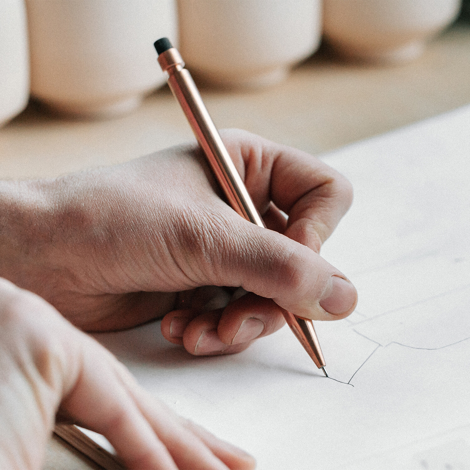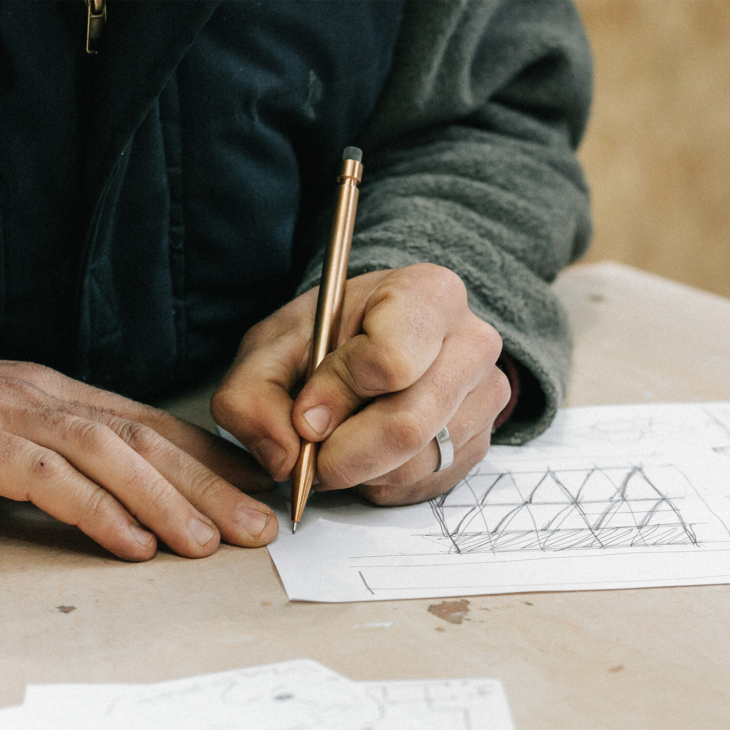 Every Modern Fuel pencil is carved out of a solid block of metal and contains no plastic parts. The pencil is an engineering marvel that fits together seamlessly. No two pencils are exactly alike—the cone and body are combined during production, and the pencil is blended and finished by hand for a flawless presentation.