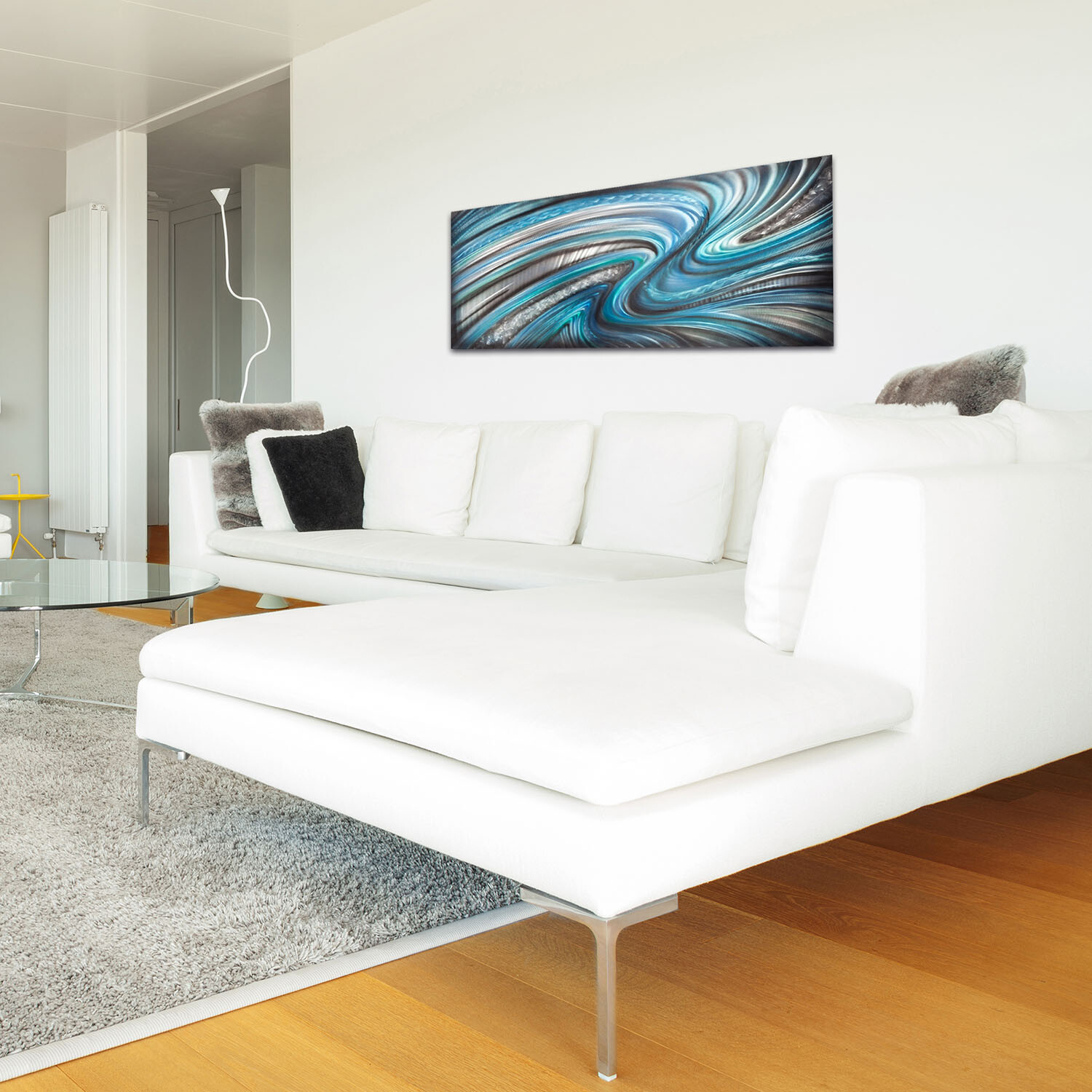 Bold and commanding, this collection of modern metal wall art will add a magnificent focal point to any space. Featuring whirling colors and abstract designs, each giclée piece will captivate anyone who takes a glance.