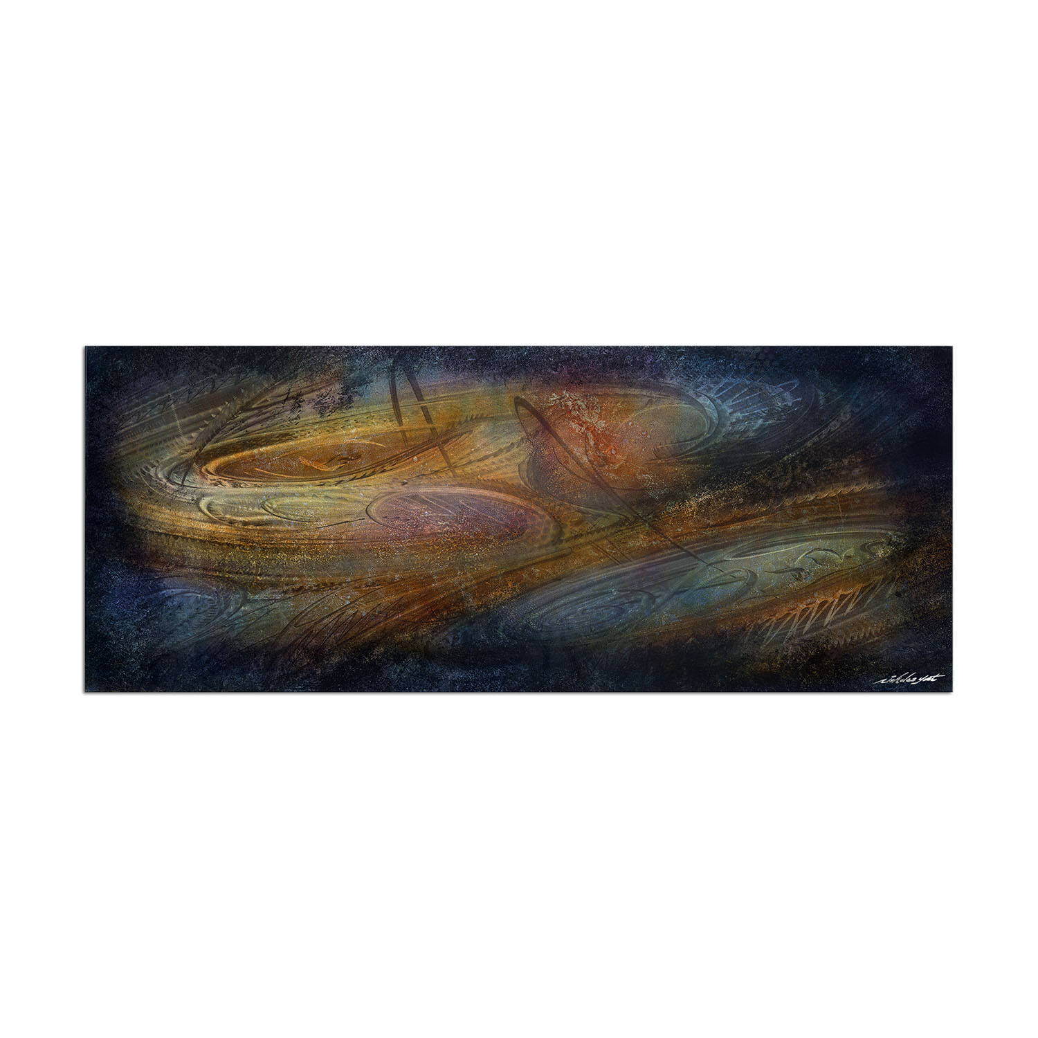 Bold and commanding, this collection of modern metal wall art will add a magnificent focal point to any space. Featuring whirling colors and abstract designs, each giclée piece will captivate anyone who takes a glance.