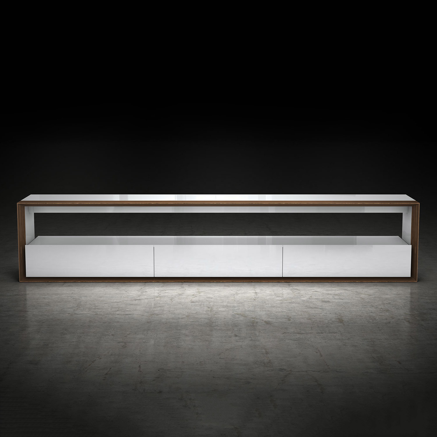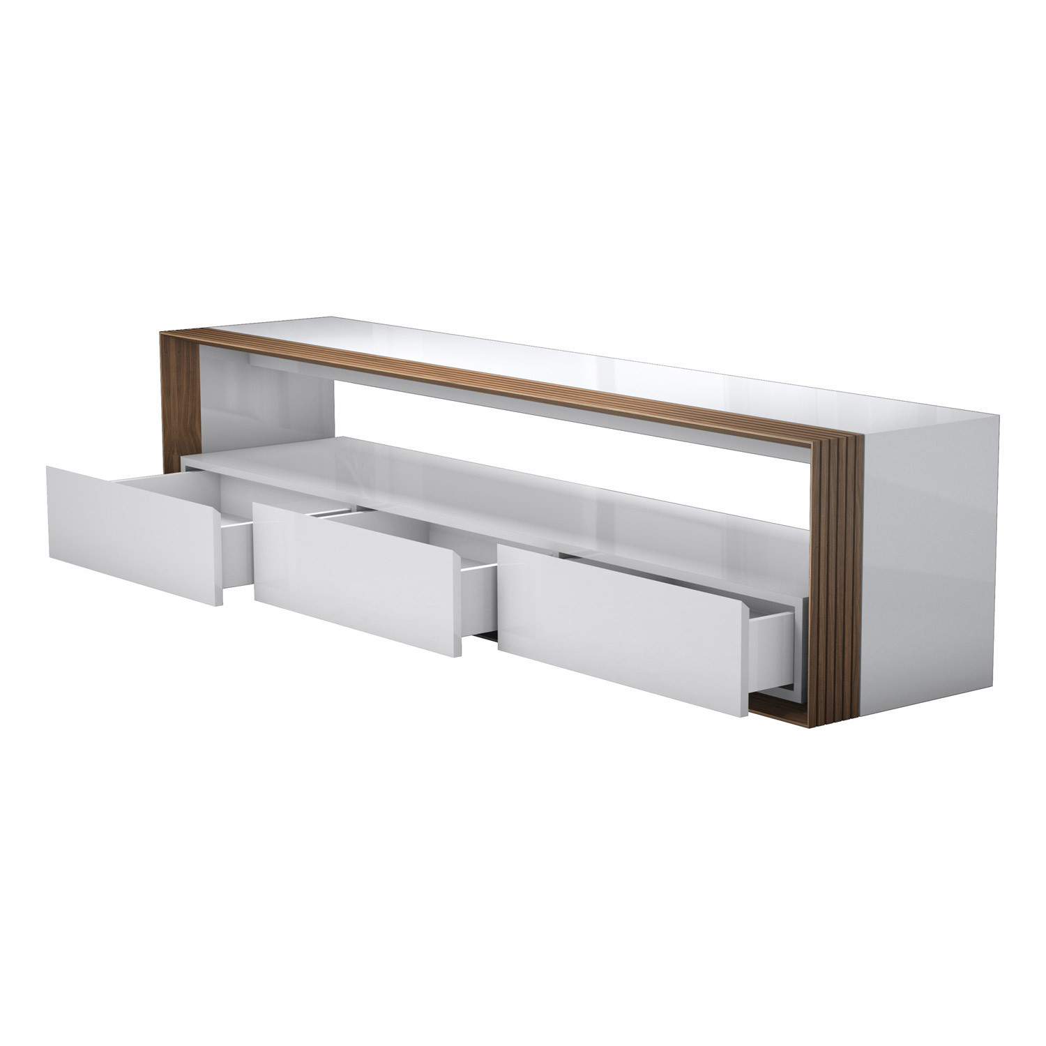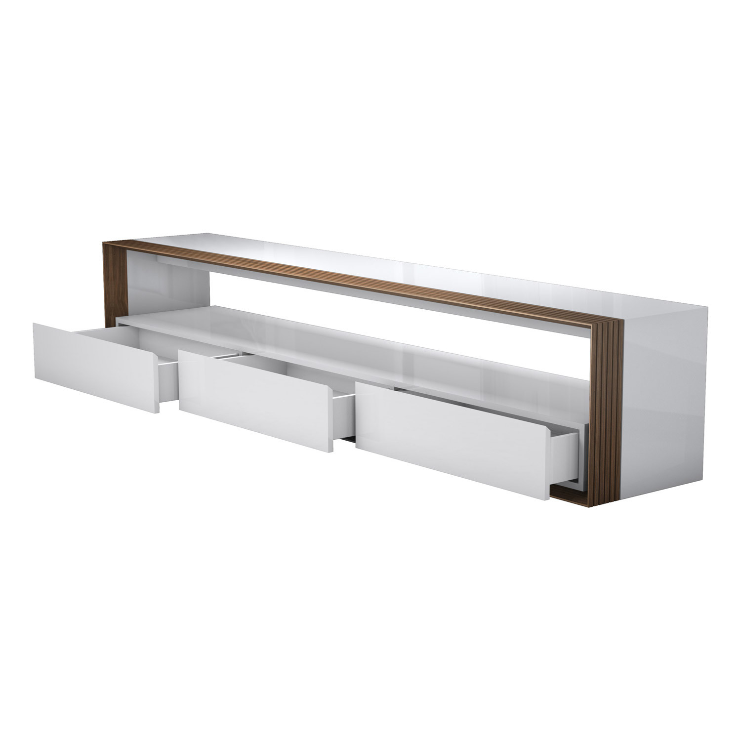 Beckenham 79in. Media Console // Glossy White + Walnut