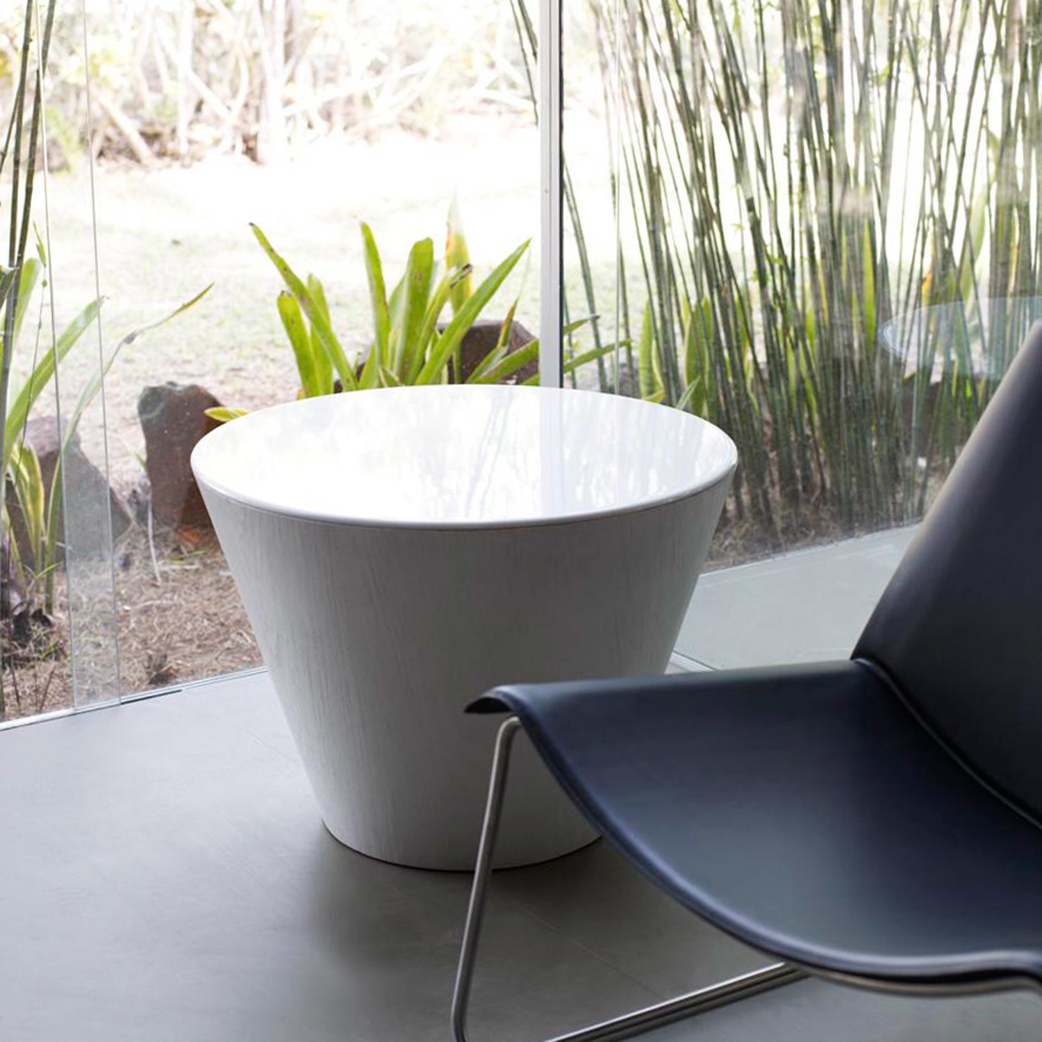 Fusing the functionality of a side table with the ingenuity of contemporary art, the Dorset Side Table has transformative appeal when tucked beside a sofa, chair or as a distinctive element on its own. A tapering Brazilian wood base offers organic appeal, and stands in elegant contrast to the sleek cone shape.