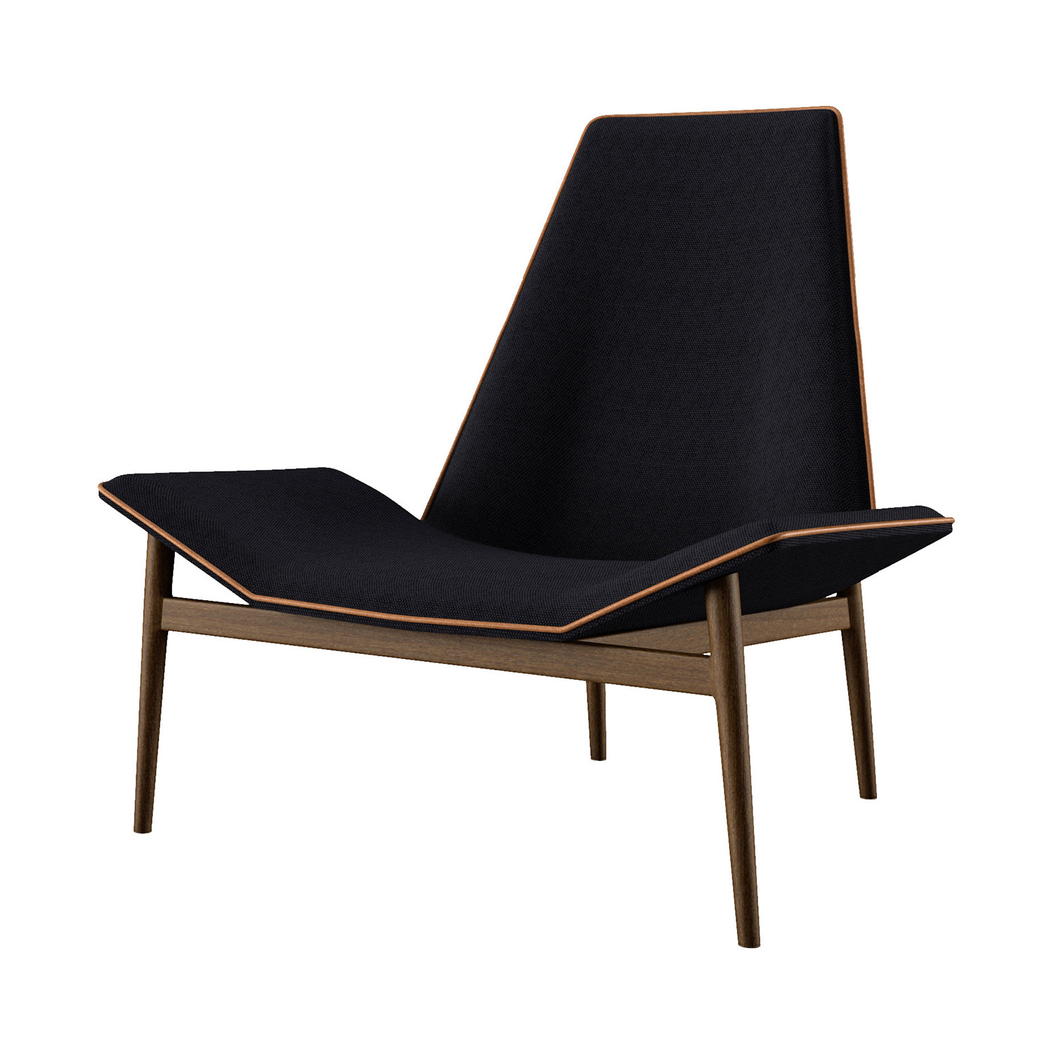 The geometric angles of the Kent Lounge Chair give it the austere air of minimalist design. Yet the comfort padding on the seat and tapered back, the mix of leather and premium tweed fabric, and the solid wood frame in teak finish provide a luxurious feel with quality construction to ensure it lasts. Detailed piping adds to the visual interest of this piece.