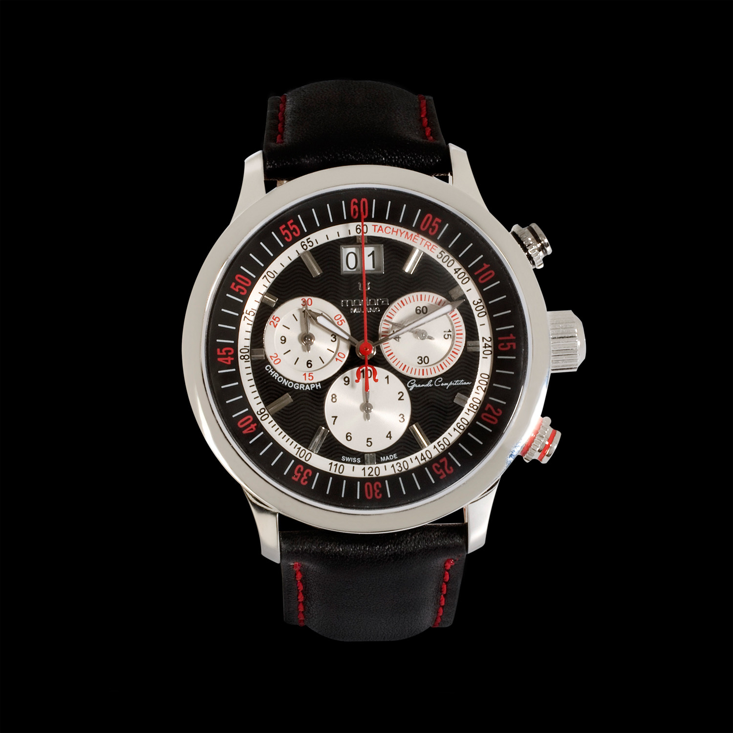 Part stopwatch, part display watch, and all tri-counter cool, the Grande Competition is a watch that wins in every side-by-side comparison. Through an exceptionally complex process and superb craftsmanship by skilled and experienced hands, all of the components are perfected before the set-up to ensure that each watch is crafted to the highest satisfaction and standards. This procedure joins at last the hands of watch making with authentic creativity and patience to construct a superb timepiece.