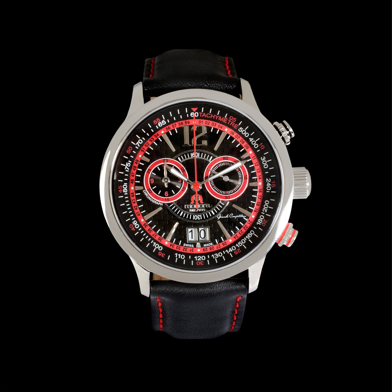 Part stopwatch, part display watch, and all tri-counter cool, the Grande Competition is a watch that wins in every side-by-side comparison. Through an exceptionally complex process and superb craftsmanship by skilled and experienced hands, all of the components are perfected before the set-up to ensure that each watch is crafted to the highest satisfaction and standards. This procedure joins at last the hands of watch making with authentic creativity and patience to construct a superb timepiece.