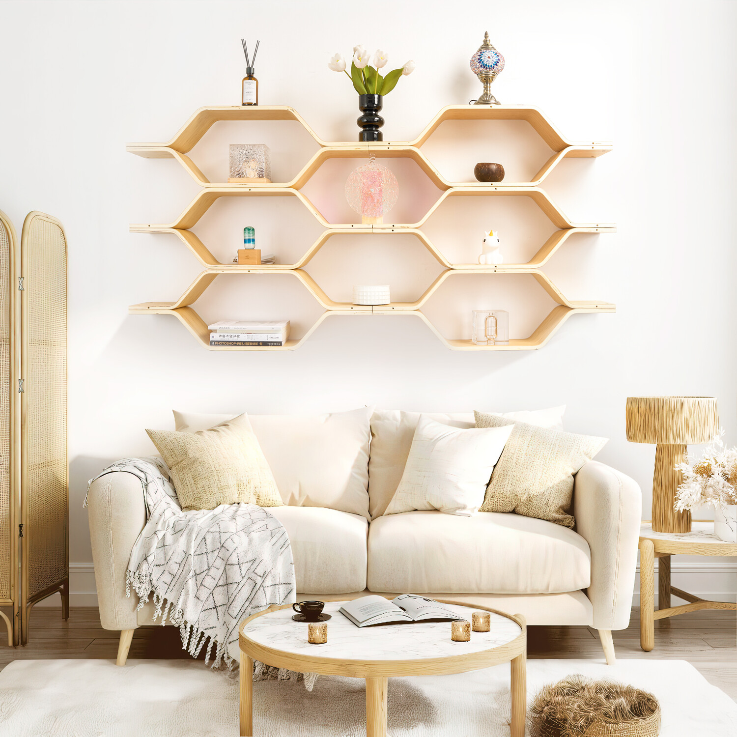 Combining the organic charm of bamboo with the restrained elegance of geometric motif, these hexagonal shelves elevate the appeal of your display items. The minimalist and textured pattern subtly blends with a variety of décor styles. Choose a single shelf to create a spotlight for your favorite objet d'art, or build an elaborate 12-compartment honey comb pattern — the modular construction of these shelves make them the perfect fit for just about any space and every purpose.