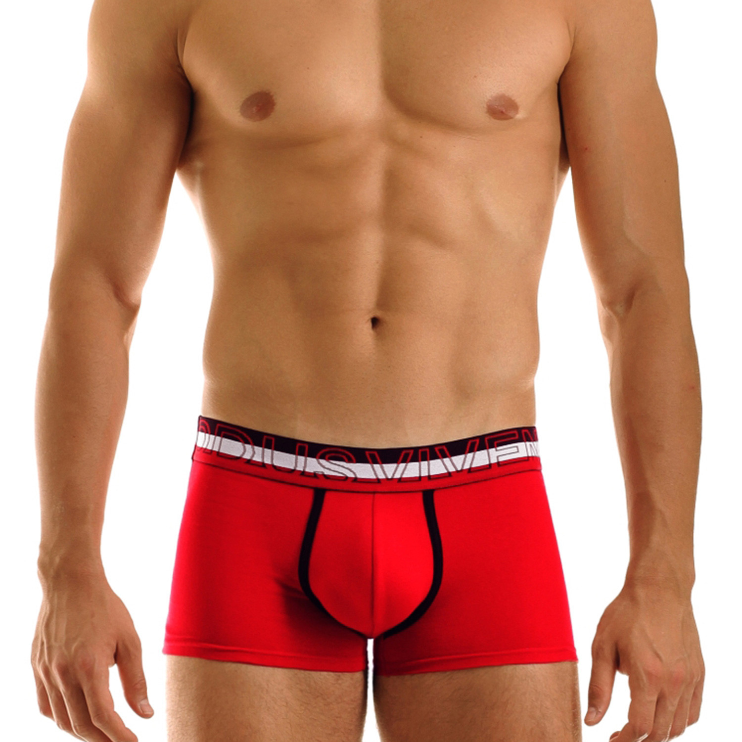 These sporty low rise boxers are perfect for everyday. Their contrast trim and striped waistband add color to a basic that provides comfort and support. Their stretchy knit cotton construction in fiery color combinations are sure to heat up your wardrobe.