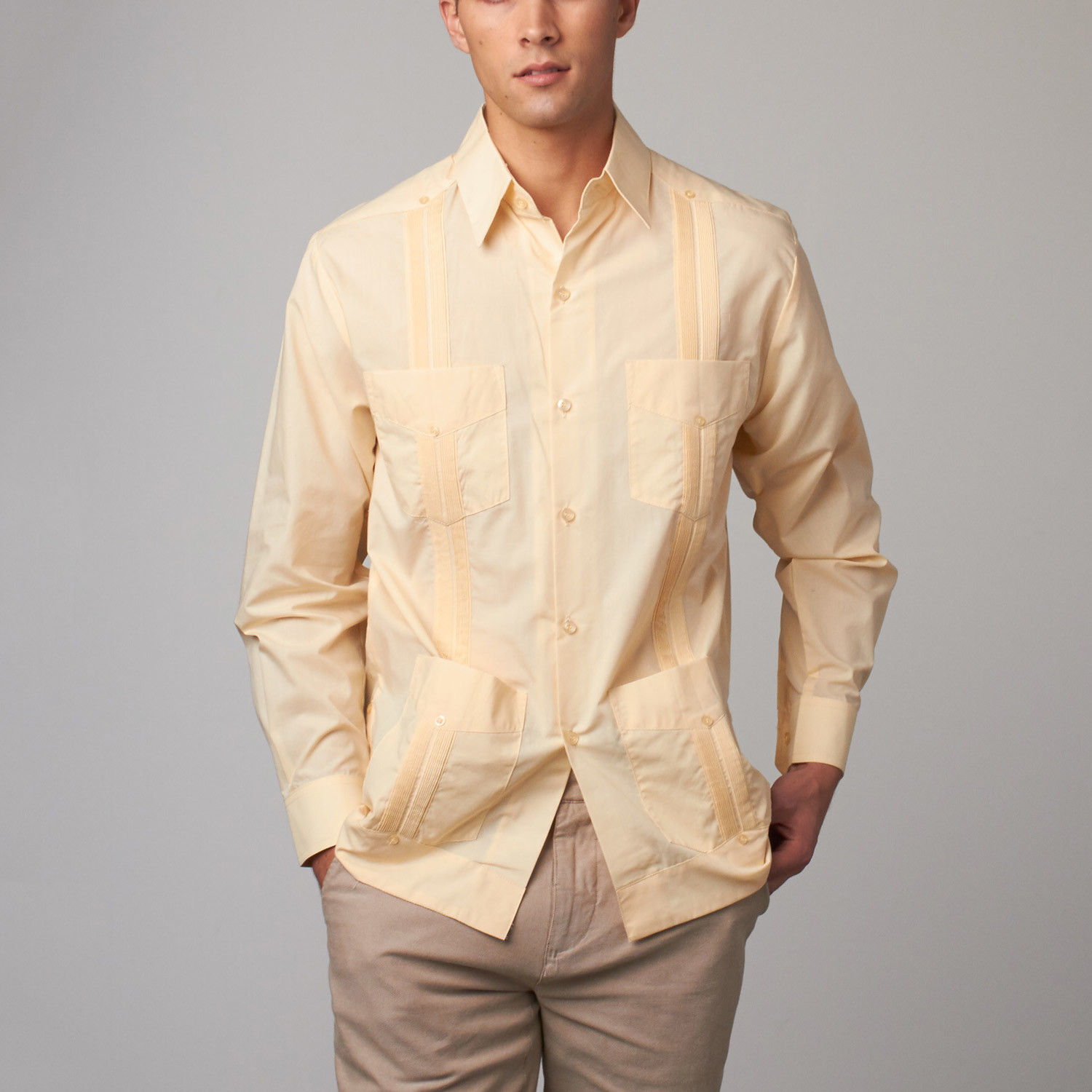 A traditional Latin American and Caribbean garment characterized by its vertical pleated striping, four-pocket front, decorative yoke, hem, and button detailing, the Guayabera has been outfitting stylish guys in warmer climates for years. This long sleeve poly-cotton version will keep you cool in both senses of the word.