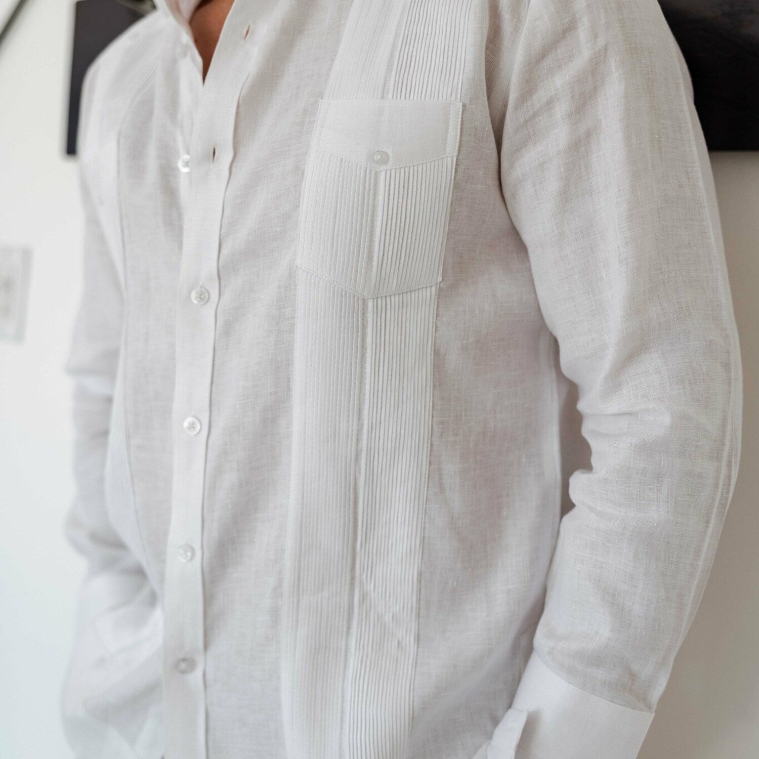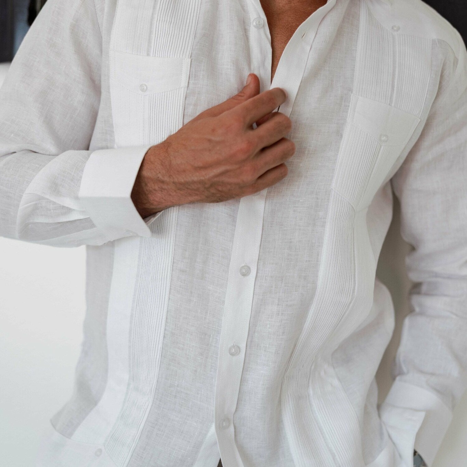 Men's 100% Linen Two-Pocket Design Guayabera Shirt // Long Sleeve