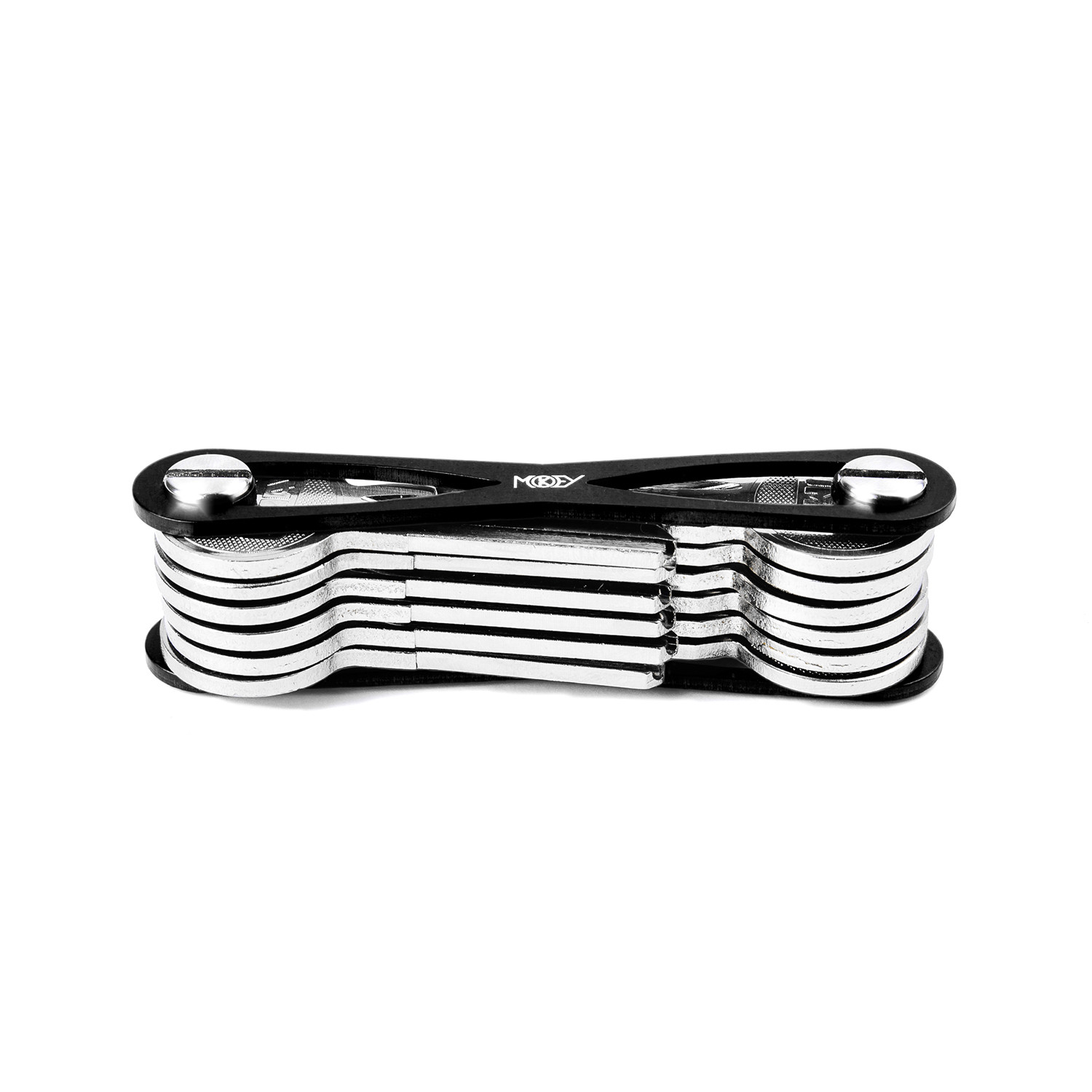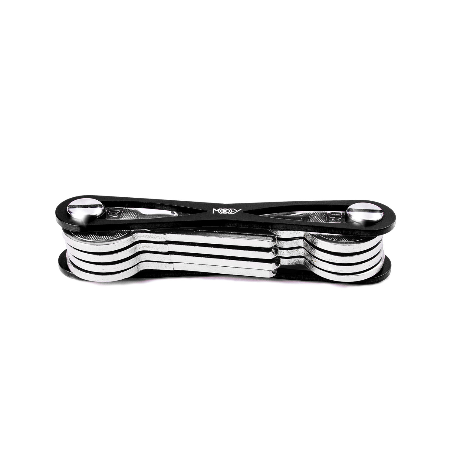 MOKEY just might be the most compact keyring in the world. Crafted in Germany from sleek and durable aluminum, it holds as many as 16 keys in perfect, sturdy organization. No more fumbling or jangling, simply fold out the key you need - just like a Swiss army knife - and then fold it away and slip it in your pocket.